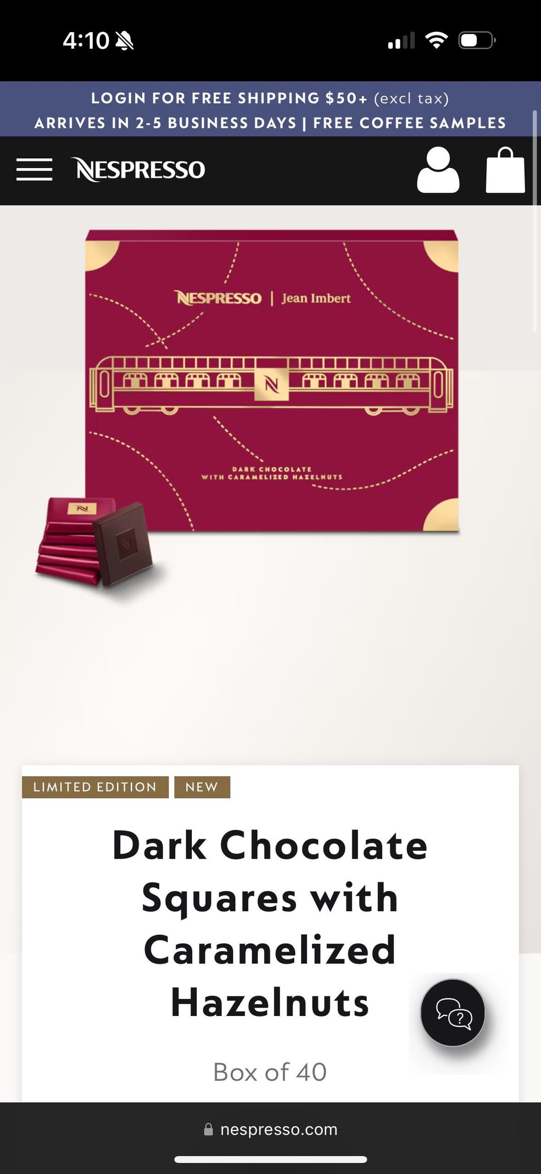 Nespresso chocolate is pretty much just OK. The best in my opinion is the caramel chocolate, not a huge fan of the dark chocolate from Nespresso