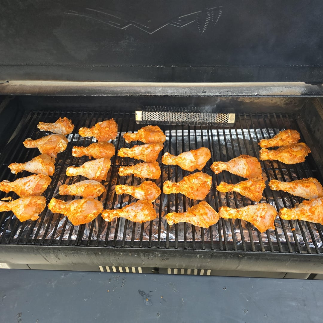 First attempt at this method using Costco marinaded drumsticks. Set grill to 400, put them on at 100 (something something dirty smoke), flipped after 30, sauced half of them after another 20/25 then pulled 10 min after that. Easy peasy.