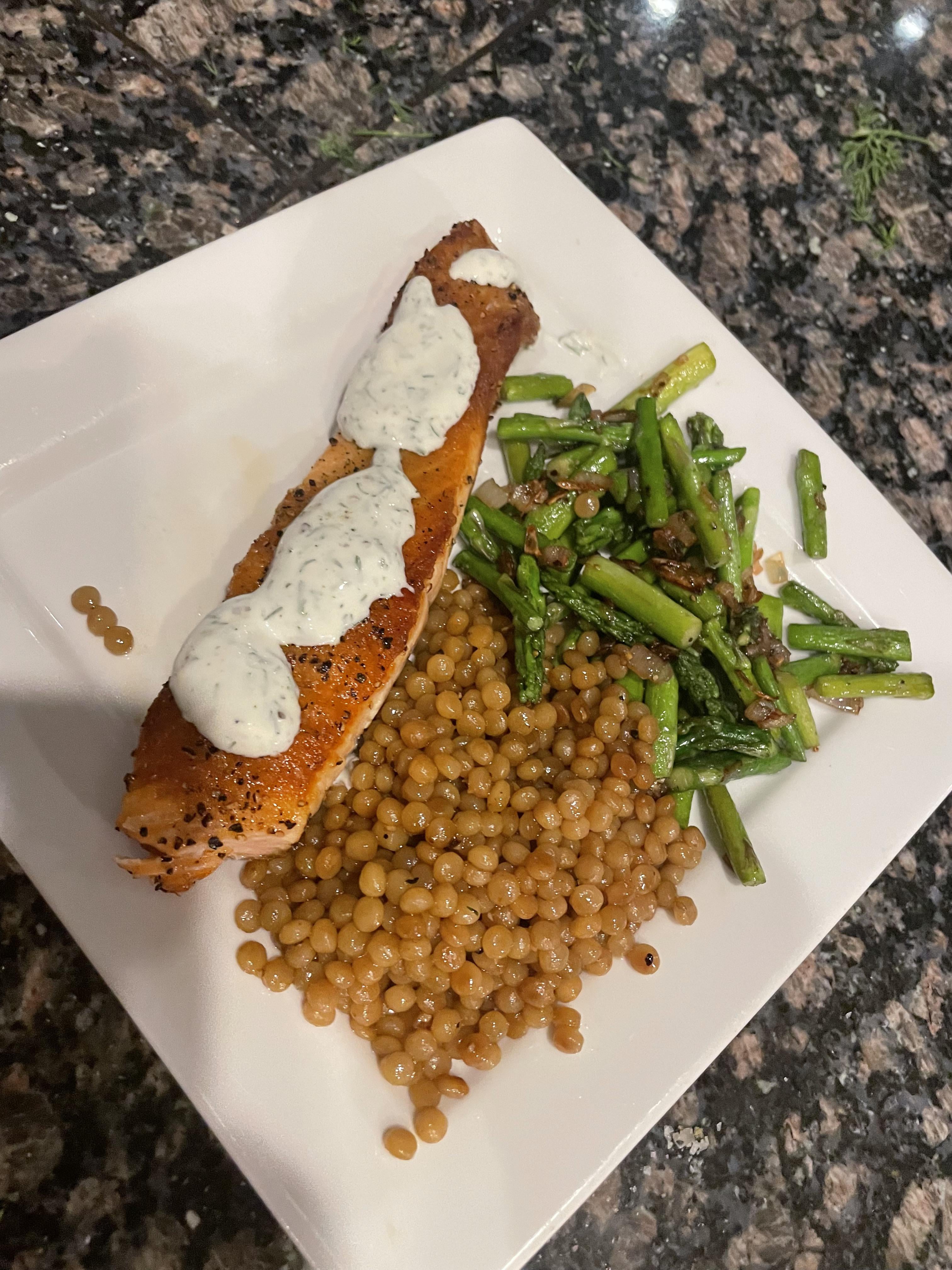 salmon with dilly crème fresh. Those three rogue couscous 🤗by michk1 Write A CommentYou must be logged in to post a comment.