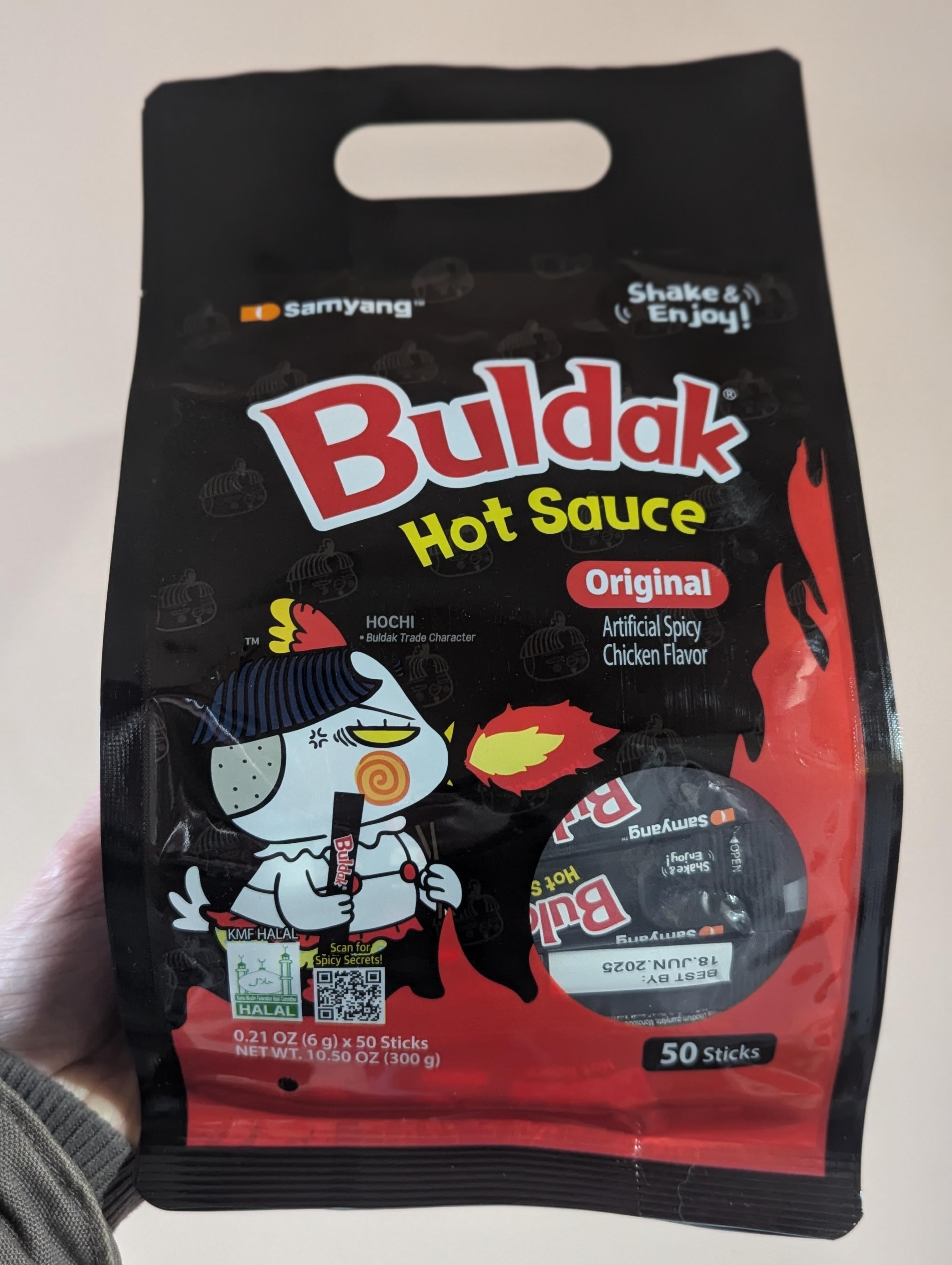 I was out on one of my shopping trips and saw this pack and had to buy it. Buldak isn't my favorite but these little hot sauce packets will be fun to spread spice to those in my life 😈😆 everyone thinks I'm a psycho anyway.