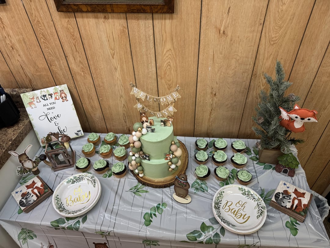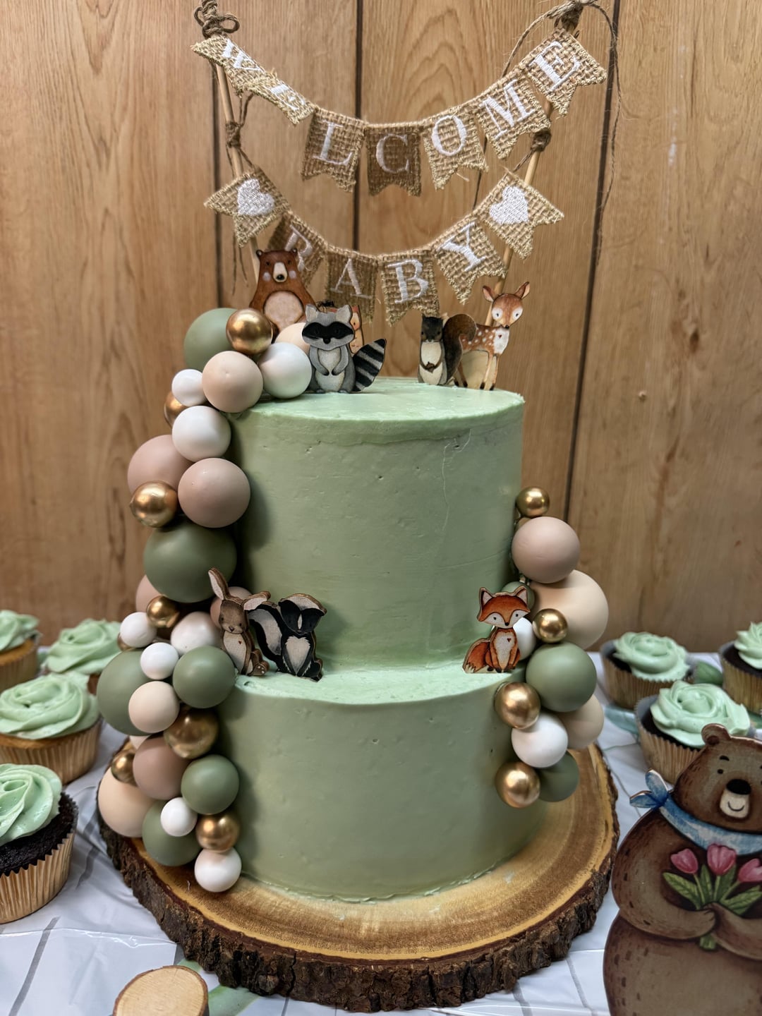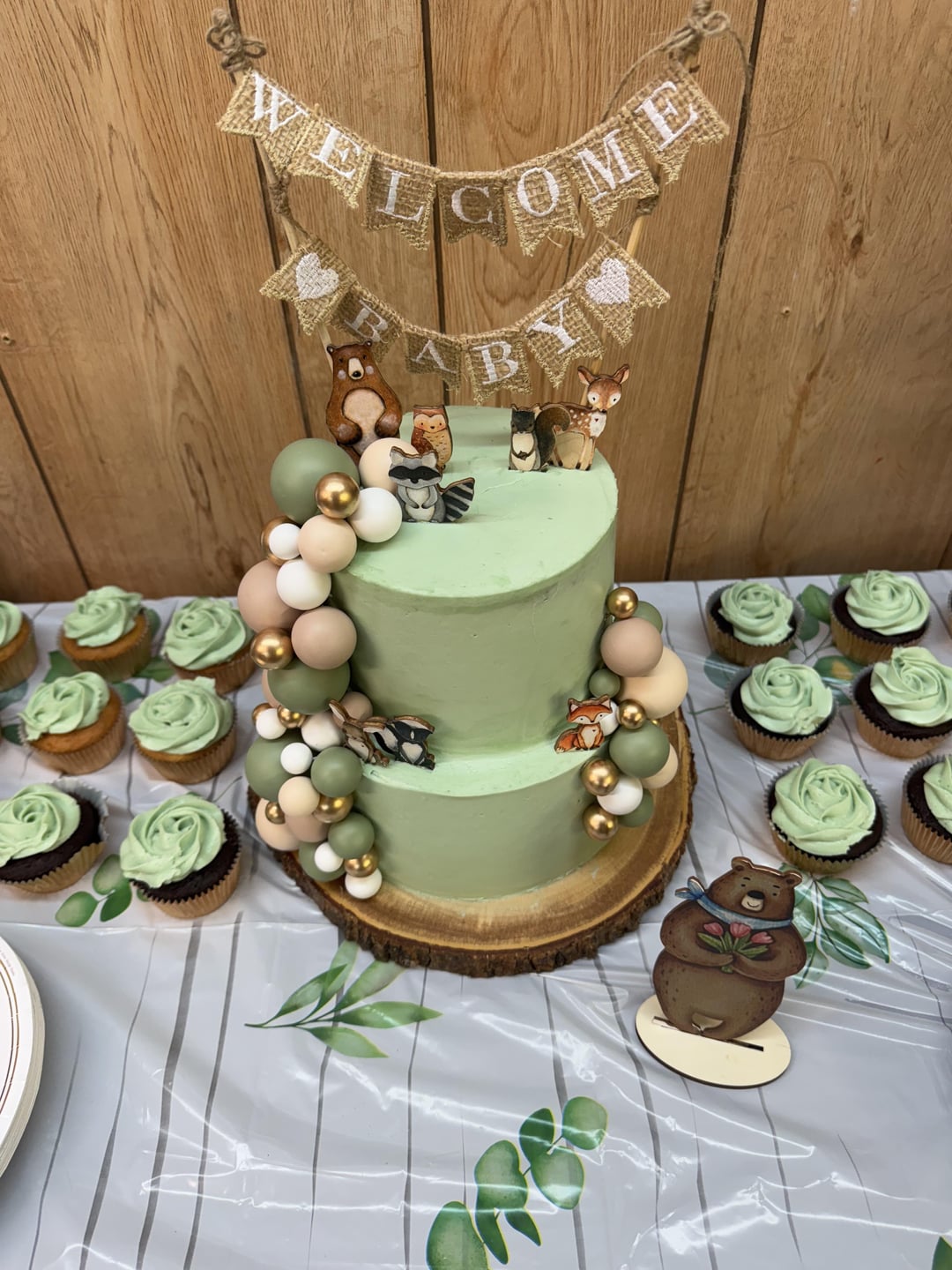 Made this cake for my baby shower a couple of weekends ago! Used the extra batter I had leftover to make cupcakes as I didn’t want to waste any of the batter. Bottom tier is vanilla and top tier is chocolate, the frosting is buttercream. The toppers and decorations were just for looks and not edible. The frosting could’ve been smoother, but I struggle a bit with smoothing out frosting. Very happy with how this turned out regardless. 🥰
