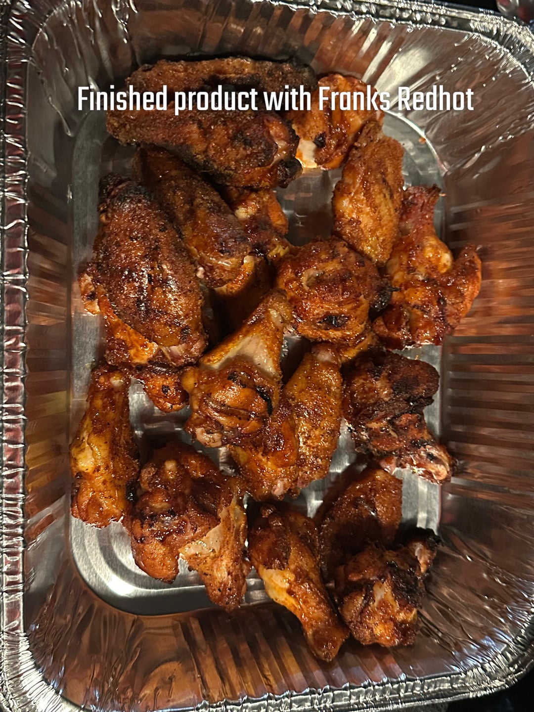 Rinse and pat them dry, then sprinkle with SPG. Tonight we did a variety of Franks Red Hot (the OG), garden herb seasoning, BBQ, and new tonight; Meat Church Texas Sugar.