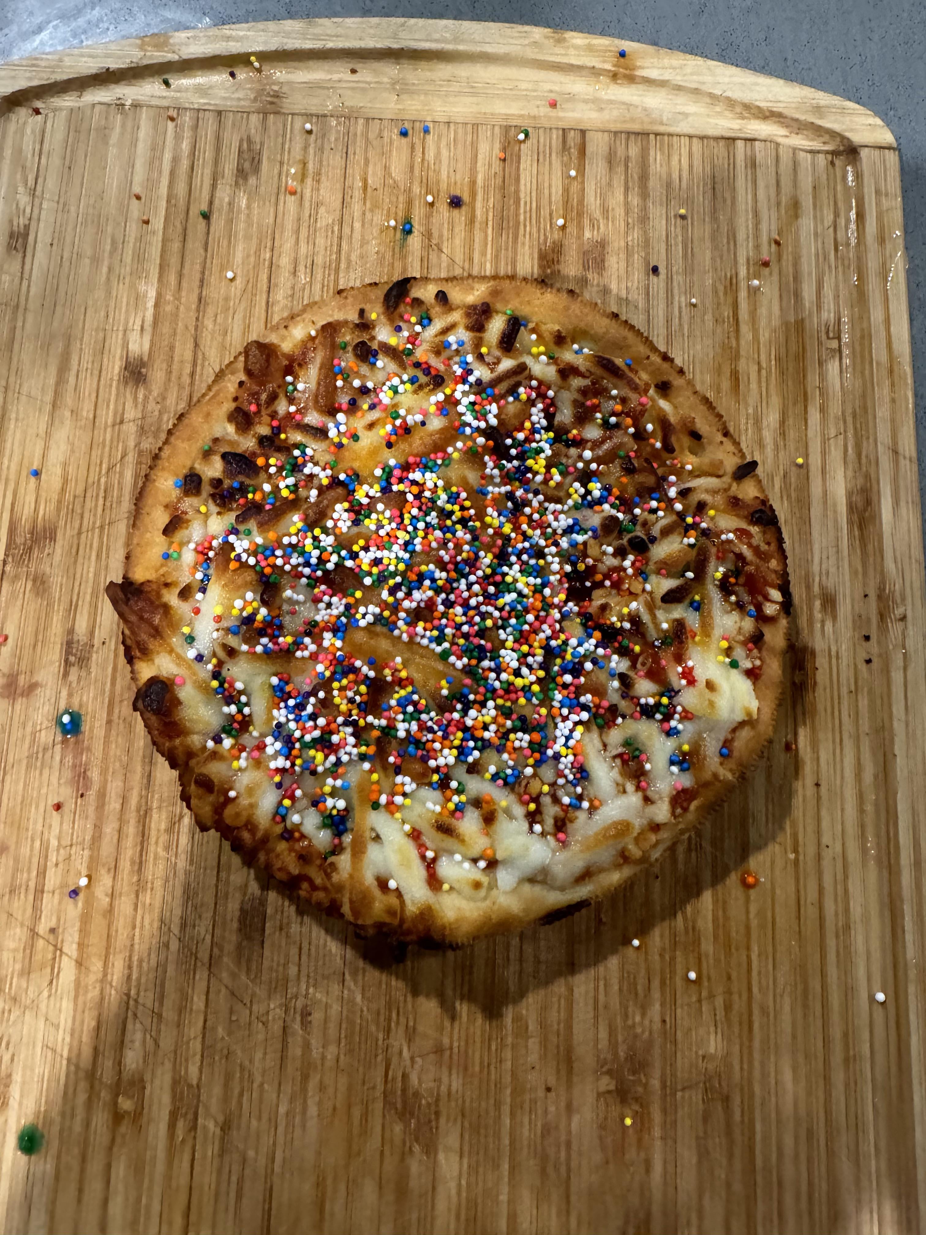 My toddler invented sprinkle pizza… by spacebarhappyhour 9 Comments REDDIT_A_Troll_Forum 12 months ago Well someone has to be the adult and make dinner. I glad the more capable one was your toddler… dogfishfrostbite 12 months ago See Australia and Fairy Bread Pizza. kelley38 12 months ago Gordon Ramsay villian origin story. KrazyAboutLogic 12 months ago Straight to juvie. Foxxxytoy 12 months ago I sentence your toddler to life in prison without parole CrypticSS21 12 months ago  Loyal9thLegionLord 12 months ago Fairy bread pizza. Unwellhouseplant 12 months ago Early bedtime for your child! KingFernando532 12 months ago Just a verbal warning, considering the defendant’s very young age.Write A CommentYou must be logged in to post a comment.