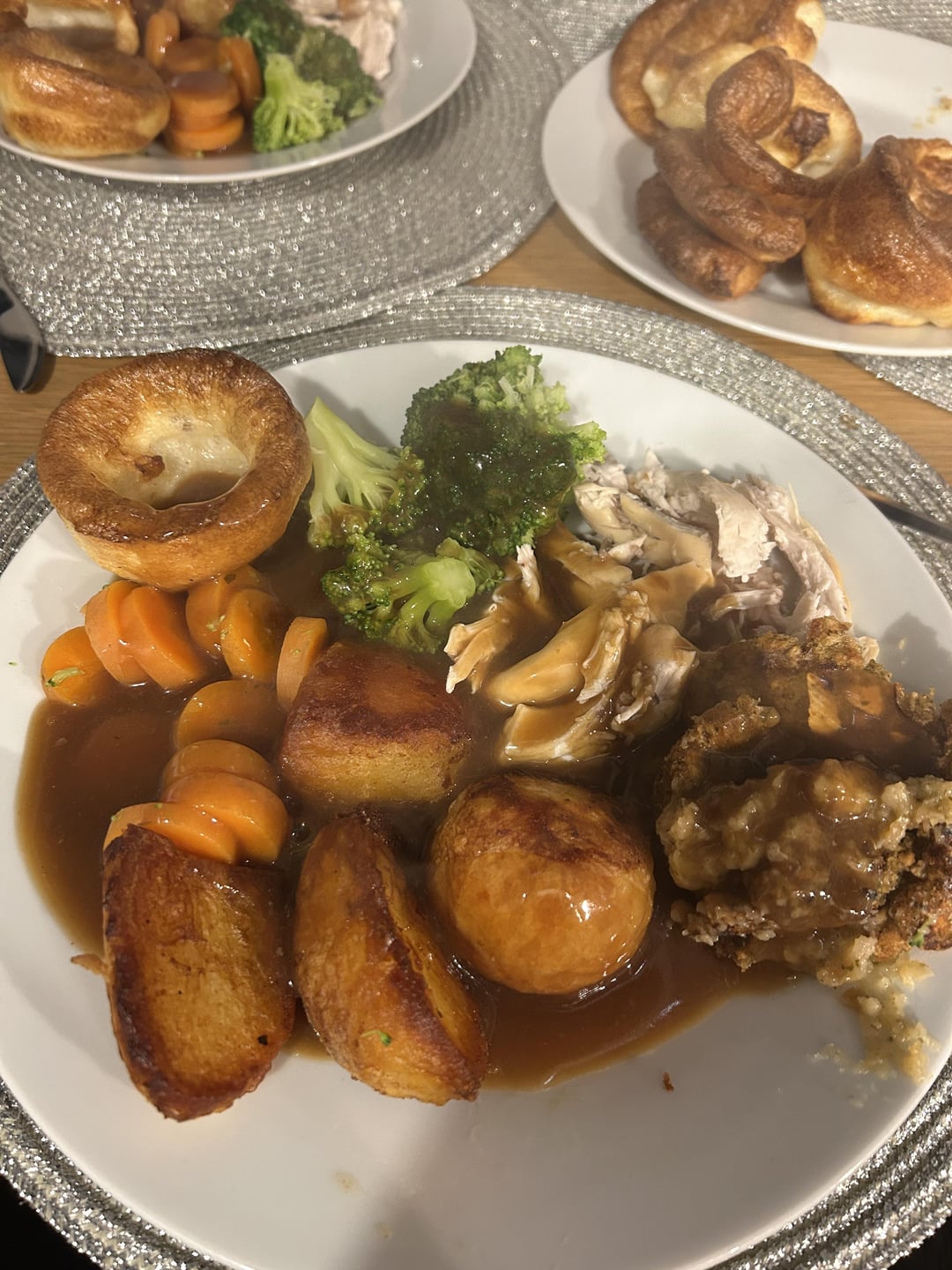 9 months pregnant so I decided today was for homemade yorkshires in case I don’t get a chance again soon. Used Mary Berry’s recipe – 100g plain flour with a pinch of salt, add three beaten eggs and a dash of milk. Bring it together than add the rest of the milk (225ml total). Cooked in hot beef dripping.