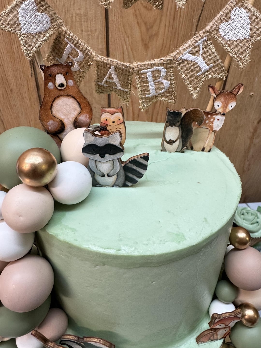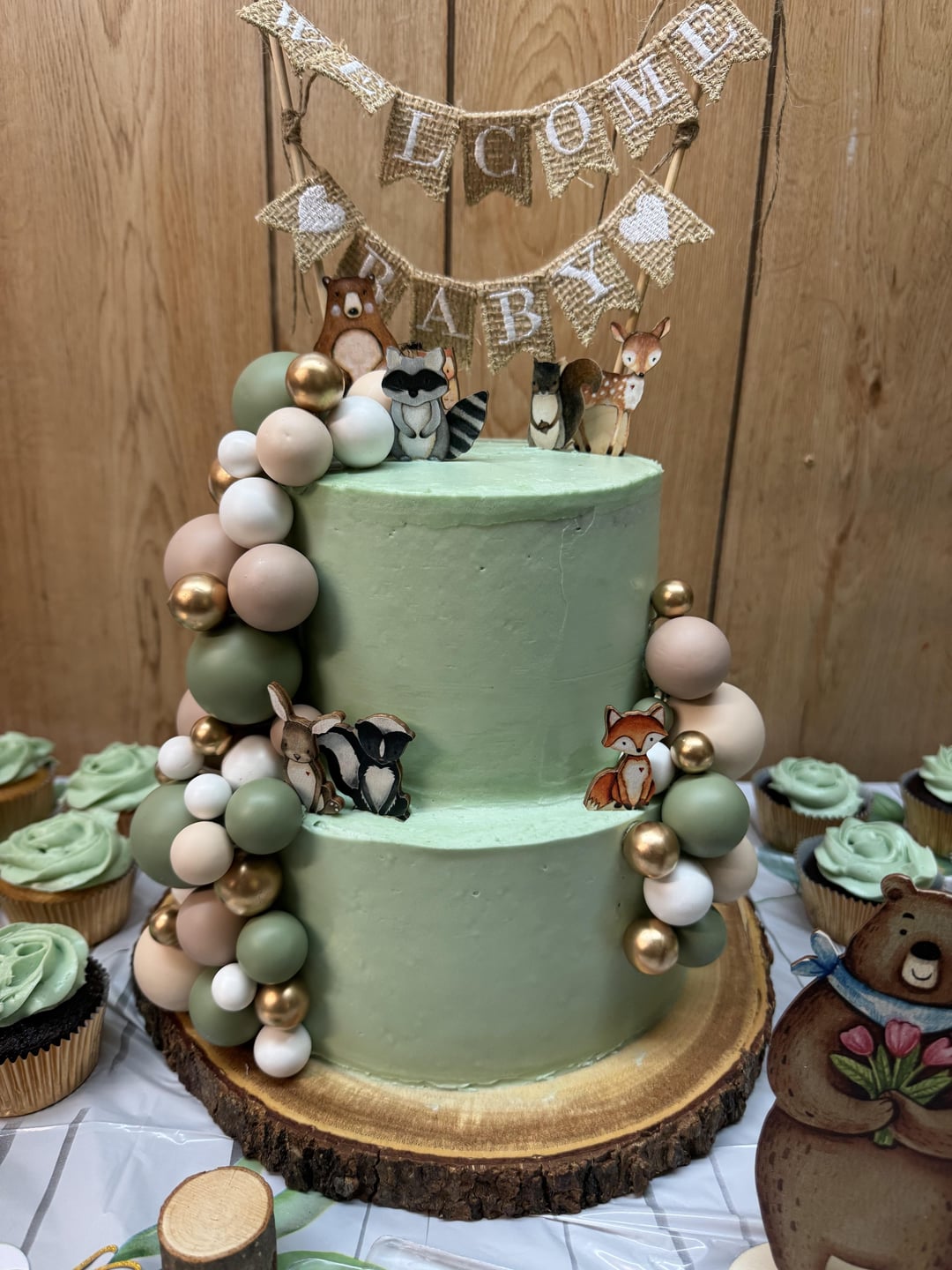 Made this cake for my baby shower a couple of weekends ago! Used the extra batter I had leftover to make cupcakes as I didn’t want to waste any of the batter. Bottom tier is vanilla and top tier is chocolate, the frosting is buttercream. The toppers and decorations were just for looks and not edible. The frosting could’ve been smoother, but I struggle a bit with smoothing out frosting. Very happy with how this turned out regardless. 🥰