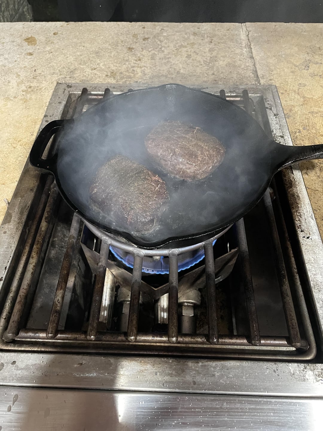 Not my best, but not my worst. 131F for 2 hours. Ice bath for 30 minutes. Hard sear in ghee and beef tallow.