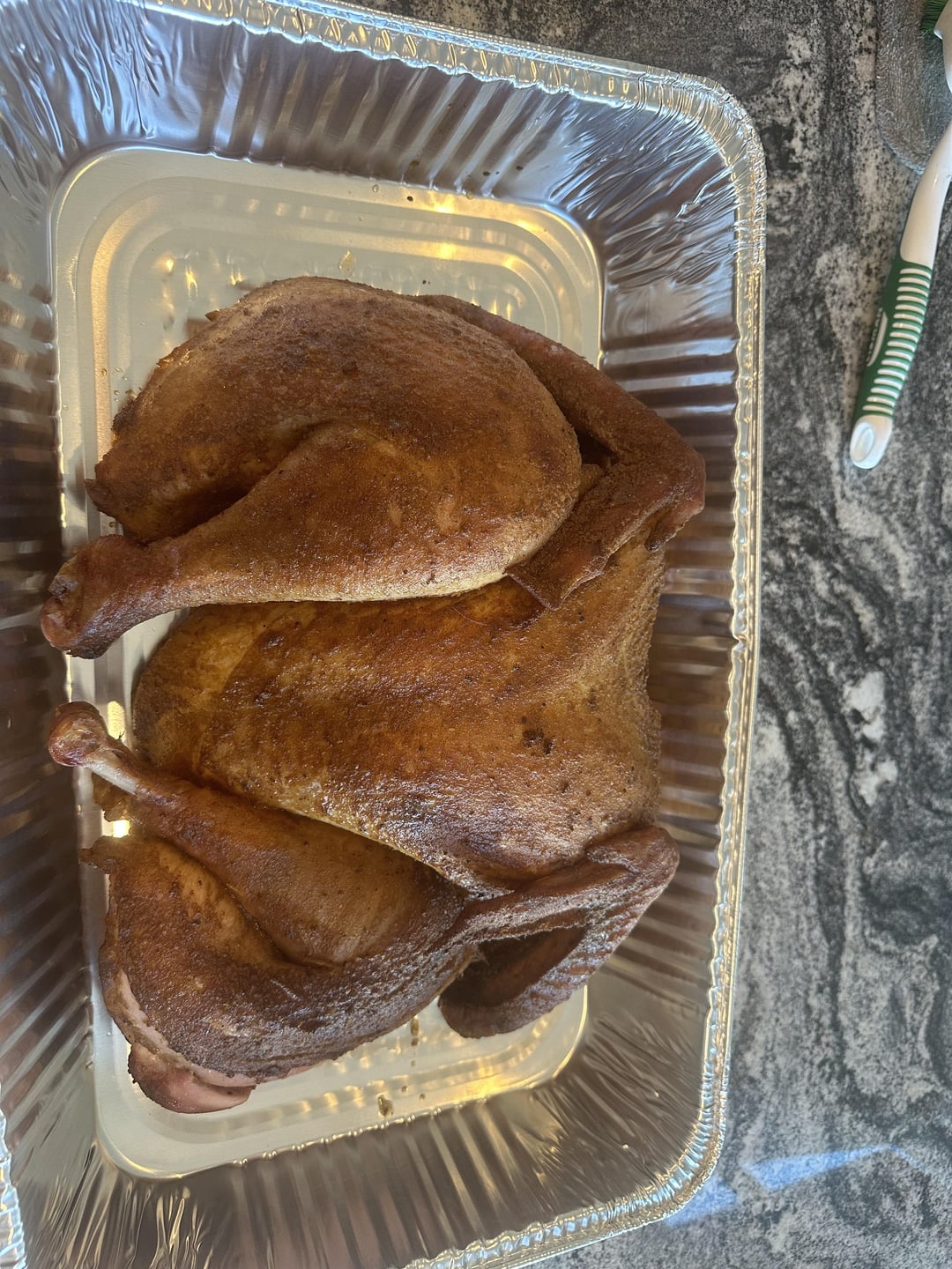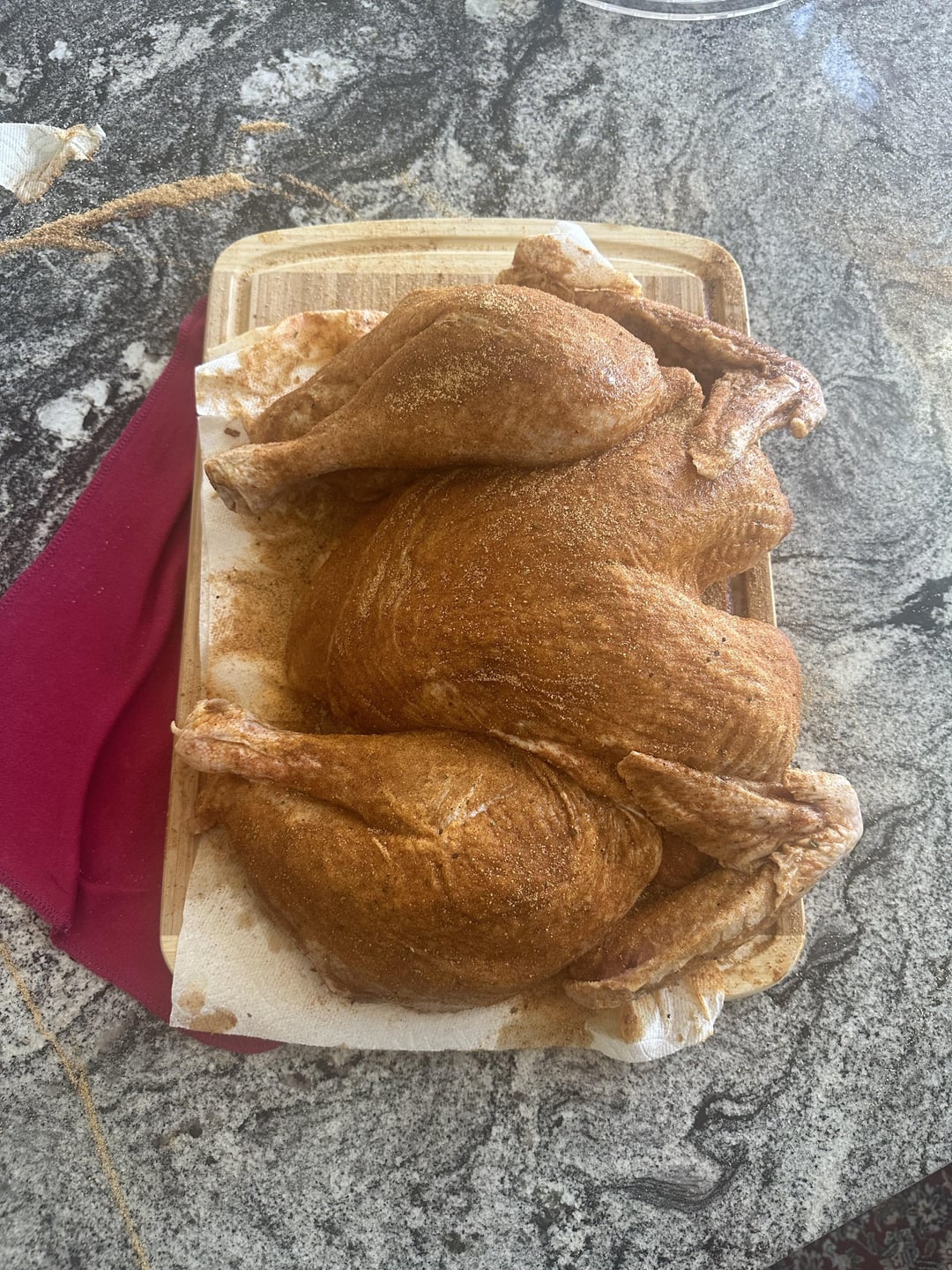 It looks great. It does look sort of flat. Did you actually cut it so it would sit like that? Or is it whole and I’m just not seeing it? I would love to try my hands at a smoked turkey. I love beer Cana chicken but have no idea how to tackle a turkey.