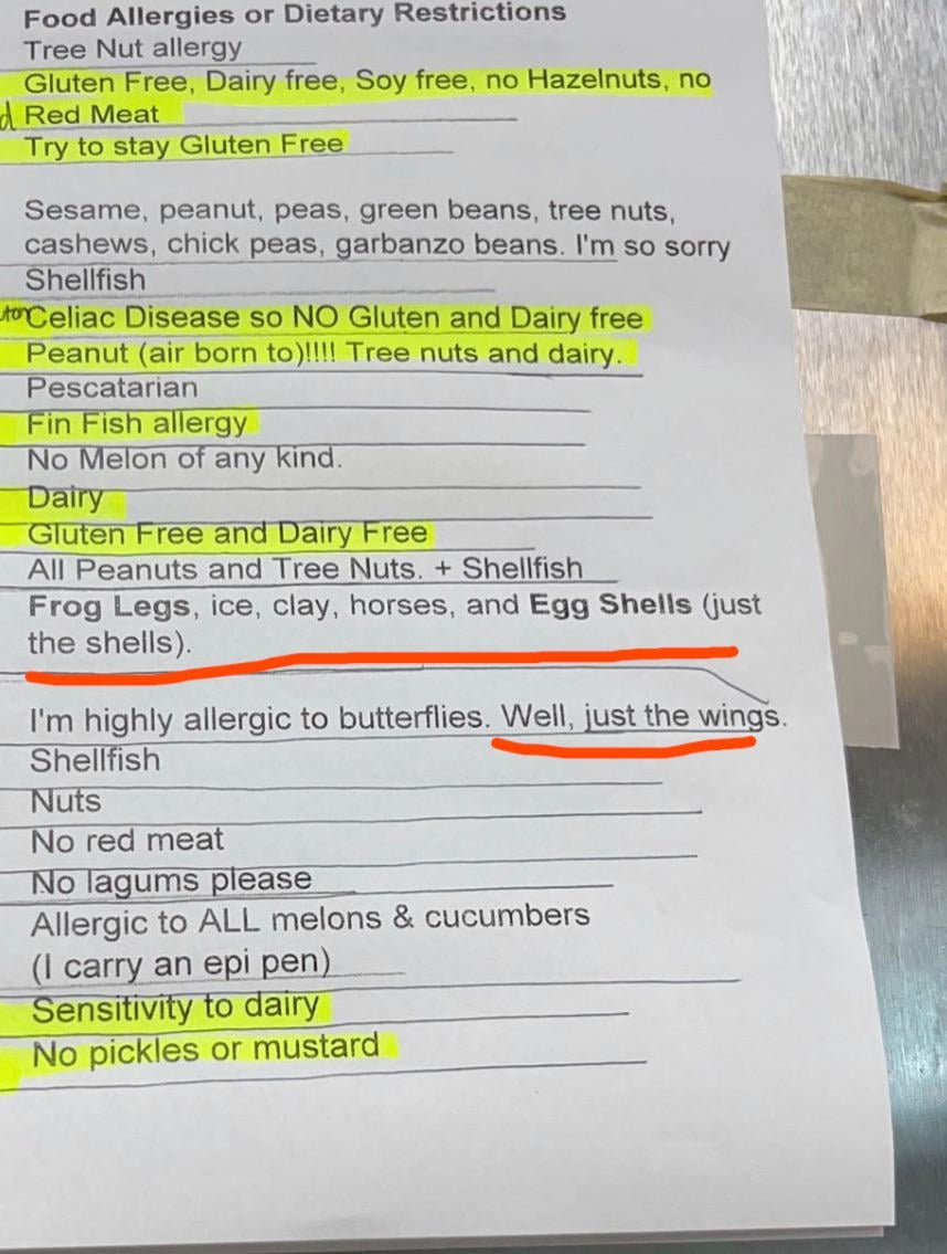 “Yes, tonight I’ll be having the egg shells, please…. But can you include ONLY the part that ISN’T the shell? I’m allergic to those. Thank you so very much!”