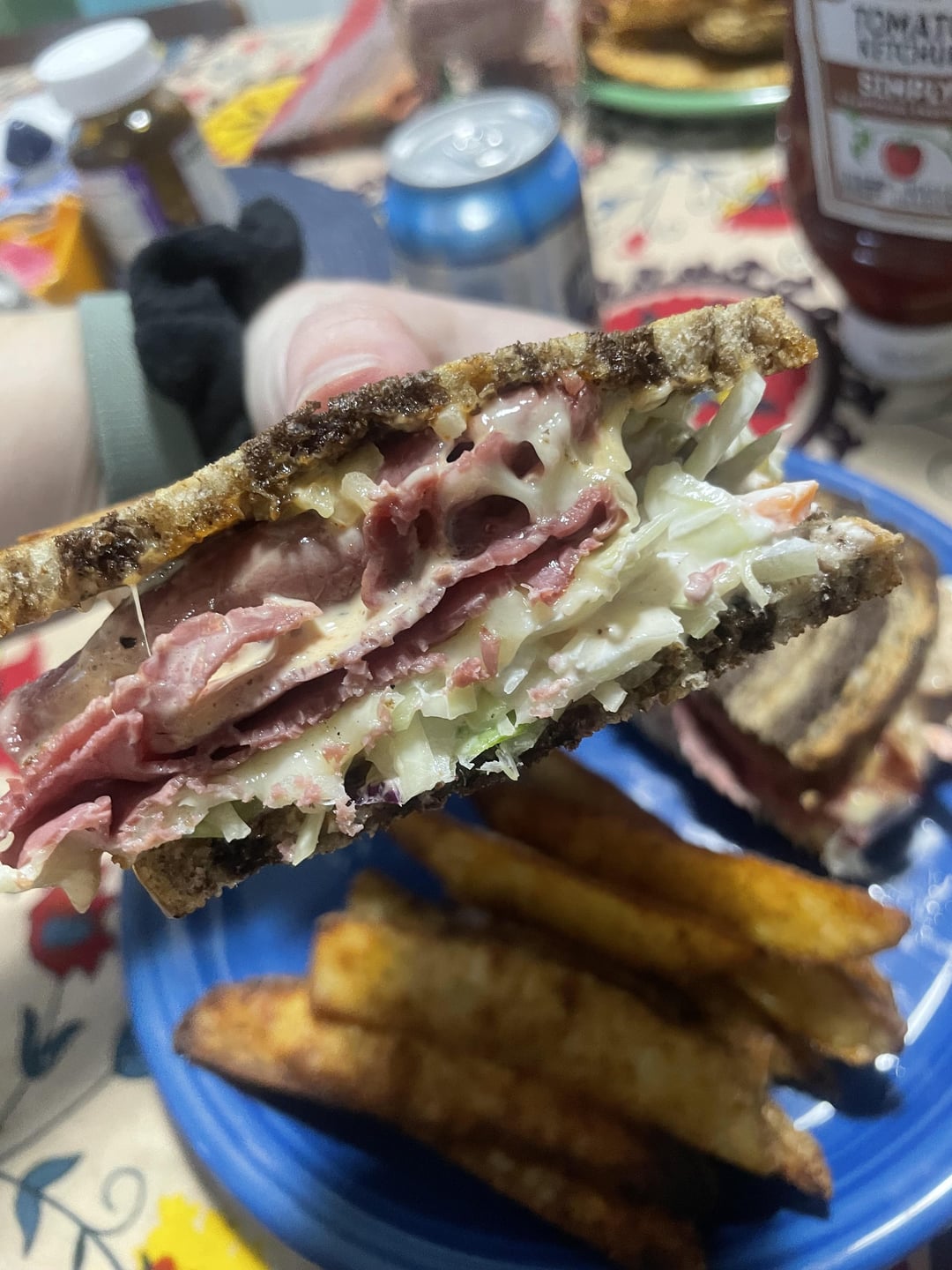 corned beef Rachel. messy but delicious by emilyjobot 6 Comments zhornet 12 months ago Looks delicious! Turkey = Rachael Corn Beef = ReubenThis is law. Nah just kidding. Do whatever tastes good! fuelfrog 12 months ago Rachels are soooo underrated, love to it!! Leather-Newspaper255 12 months ago The rye/pumpernickel swirl is such a pro move. Hope that malt vinegar went on those steak fries russtopher 12 months ago This is my favorite sandwich. whiscuit 12 months ago Fiestaware spotted! YorkiesandSneakers 12 months ago Fries look legit tooWrite A CommentYou must be logged in to post a comment.