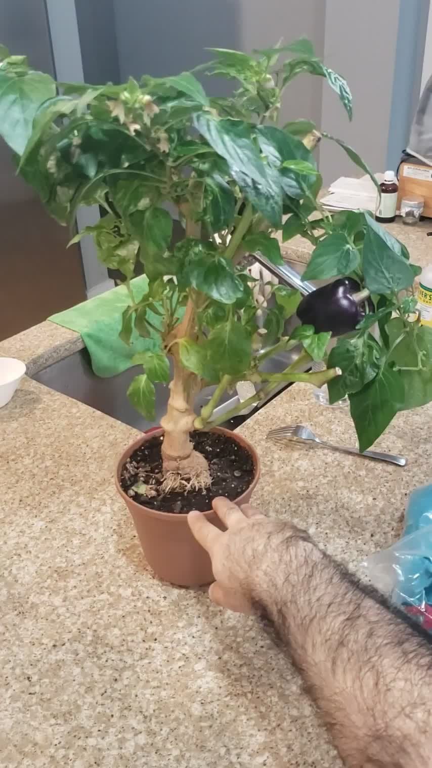 Hey folks, I’ve been gardening since the 90s and have never come across a purple bell pepper cultivar this productive or weird in growth habit. It was also the first pepper I ever tried to overwinter – was remarkably successful and got it to survive 3 years and a cross-country move (shipped it >2,000mi and kept it alive, and then my brother killed it…).