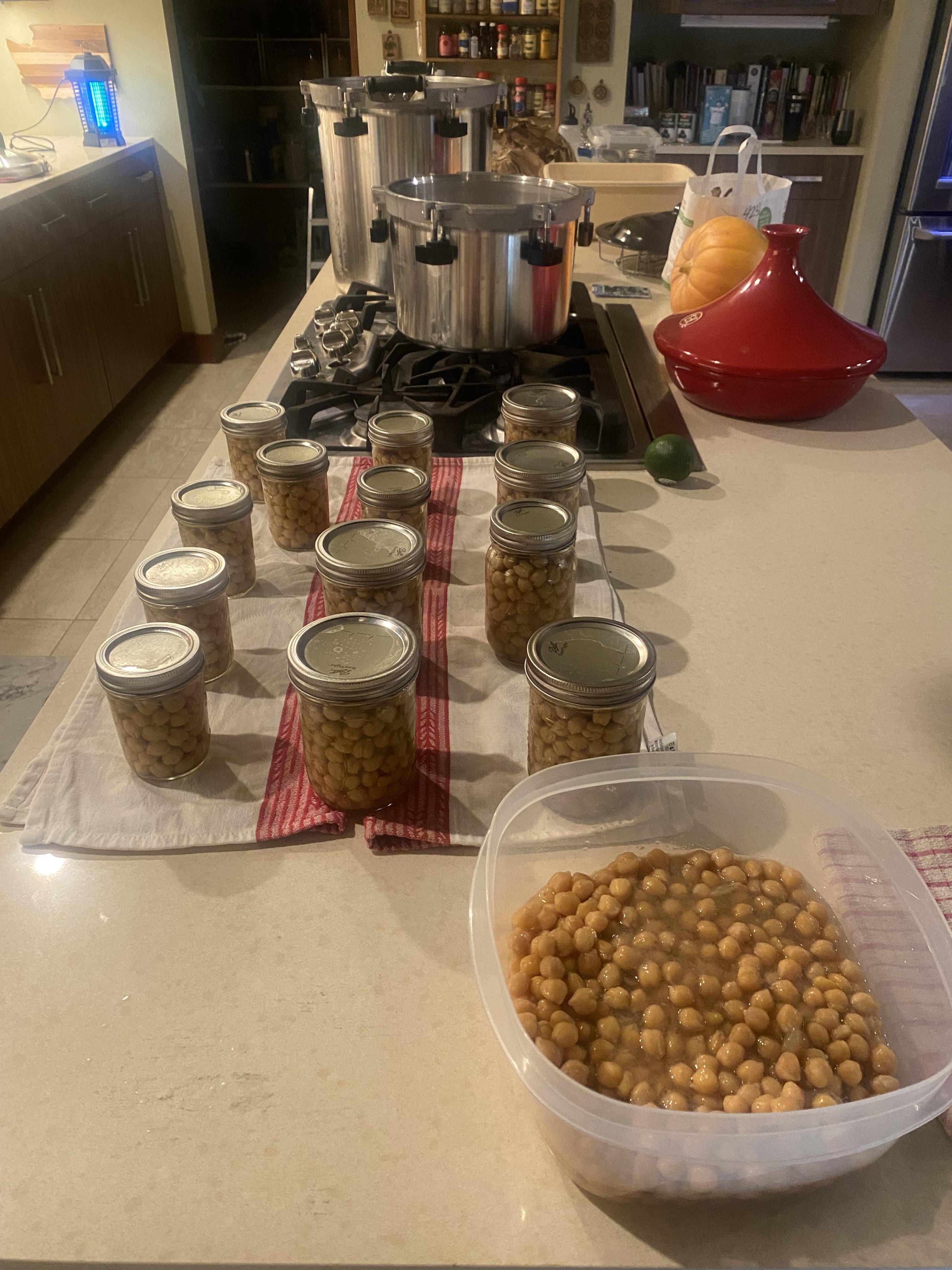 Proceeded per Healthy Canning instructions (linked below), and canned not only the desired six (6) pints, but, in batch # 2, seven (7) half-pints, which then left a tub of cooked chickpeas that I am about to turn into chickpea curry.