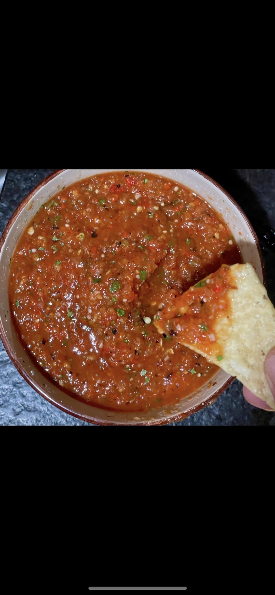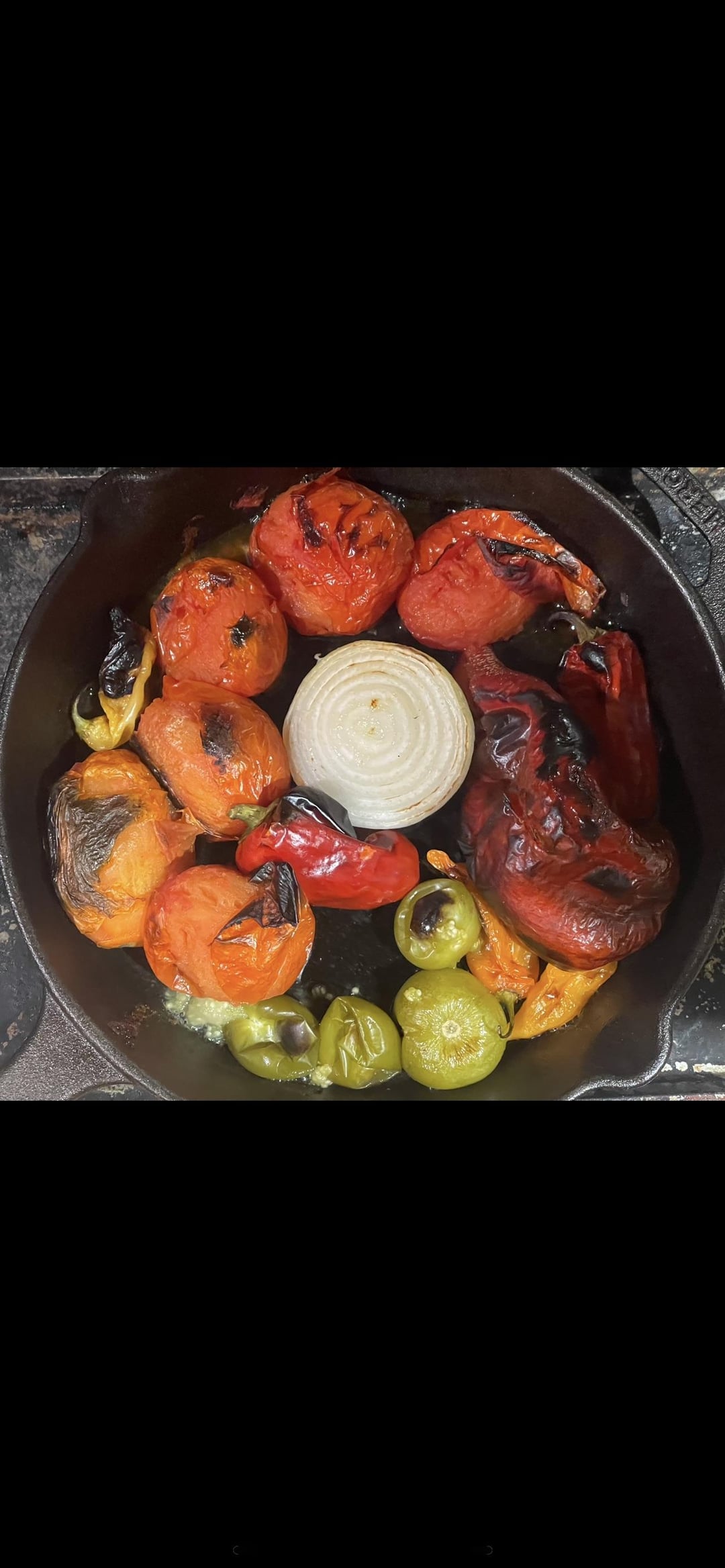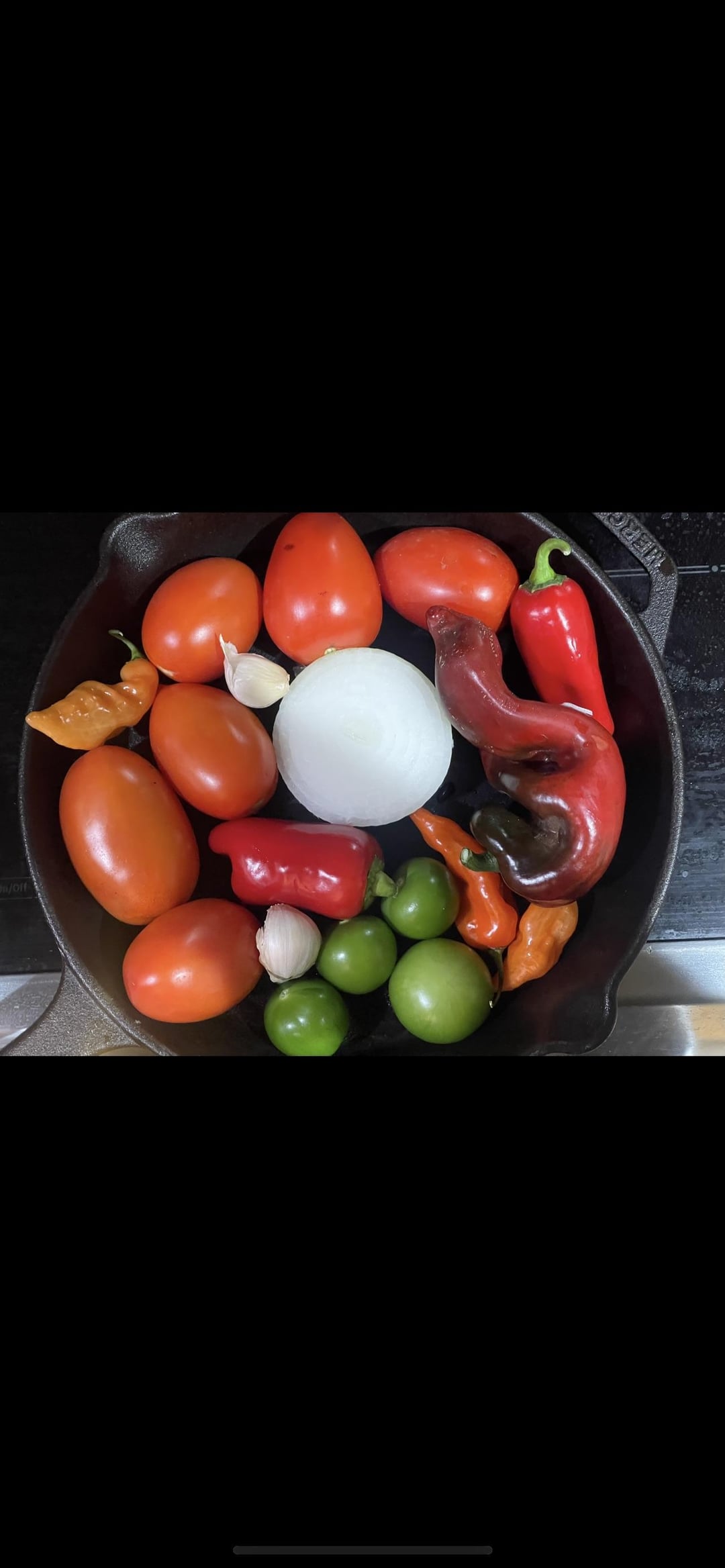 6 Roma, 4 tomatillo, 3 clove garlic 1/2 white onion, one Pueblo pepper, 2 red Jalepeno , 3 Habanero's Cilantro salt 1/2 tsp cumin and one limeby snapshot808 1 Comment retard_catapult 11 months ago Looks damn delicious! The finished product has a lovely color and consistency. I’d devour that in a heartbeat.Write A CommentYou must be logged in to post a comment.