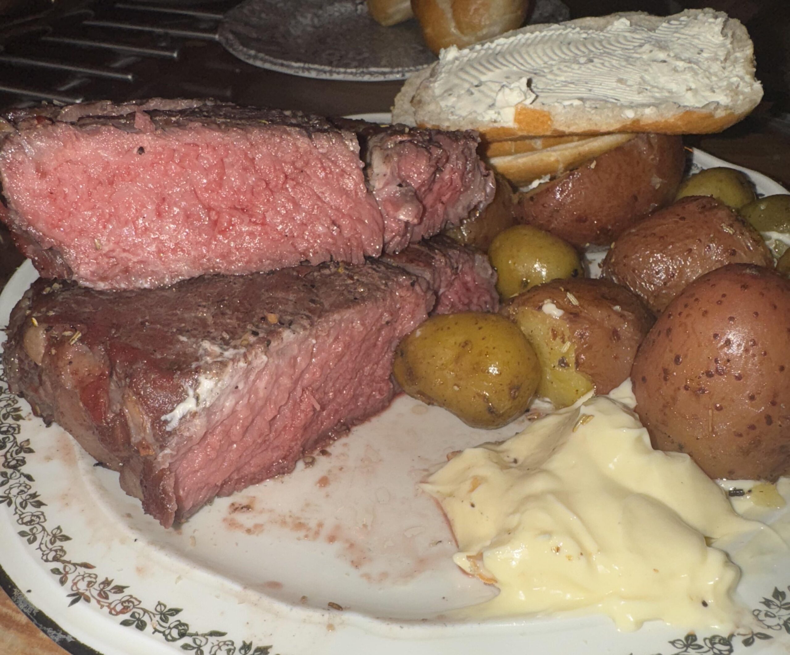 I let mine get to 120 and then turn on the propane to sear en for 30 seconds or so per side, let em rest and mmmhmmm great eatin!