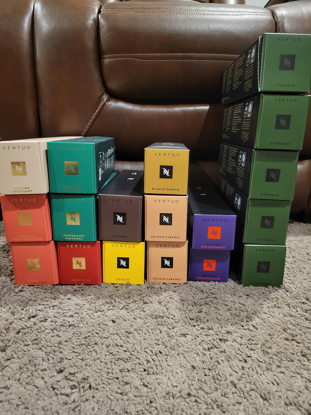 We got a machine secondhand from a relative last September. We honestly have a few coffee machines already so just stuck this in the basement, hadn't been using it too too much besides grabbing a couple sleeves when we happen to be downtown by the Nespresso boutique, or grocery store Starbucks pods here and there. Decided to try and have a little fun with it recently and this week placed a good sized app order that arrived today!