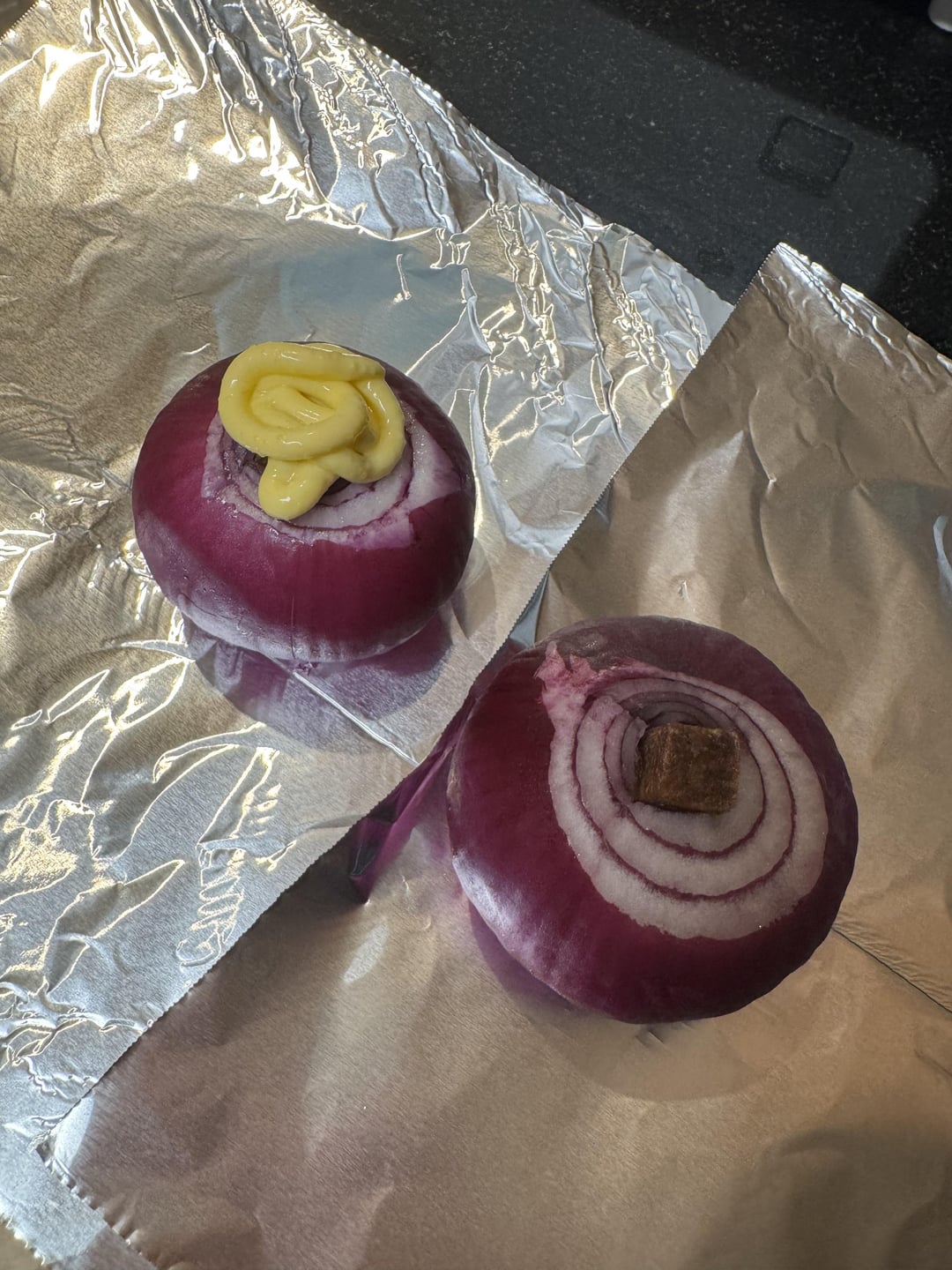 So everyone seemed to enjoy my comment about how I bake my Onions. So here’s a little After & Before picture to show y’all how they come out. Tagged NSFW because they are quite sexy.