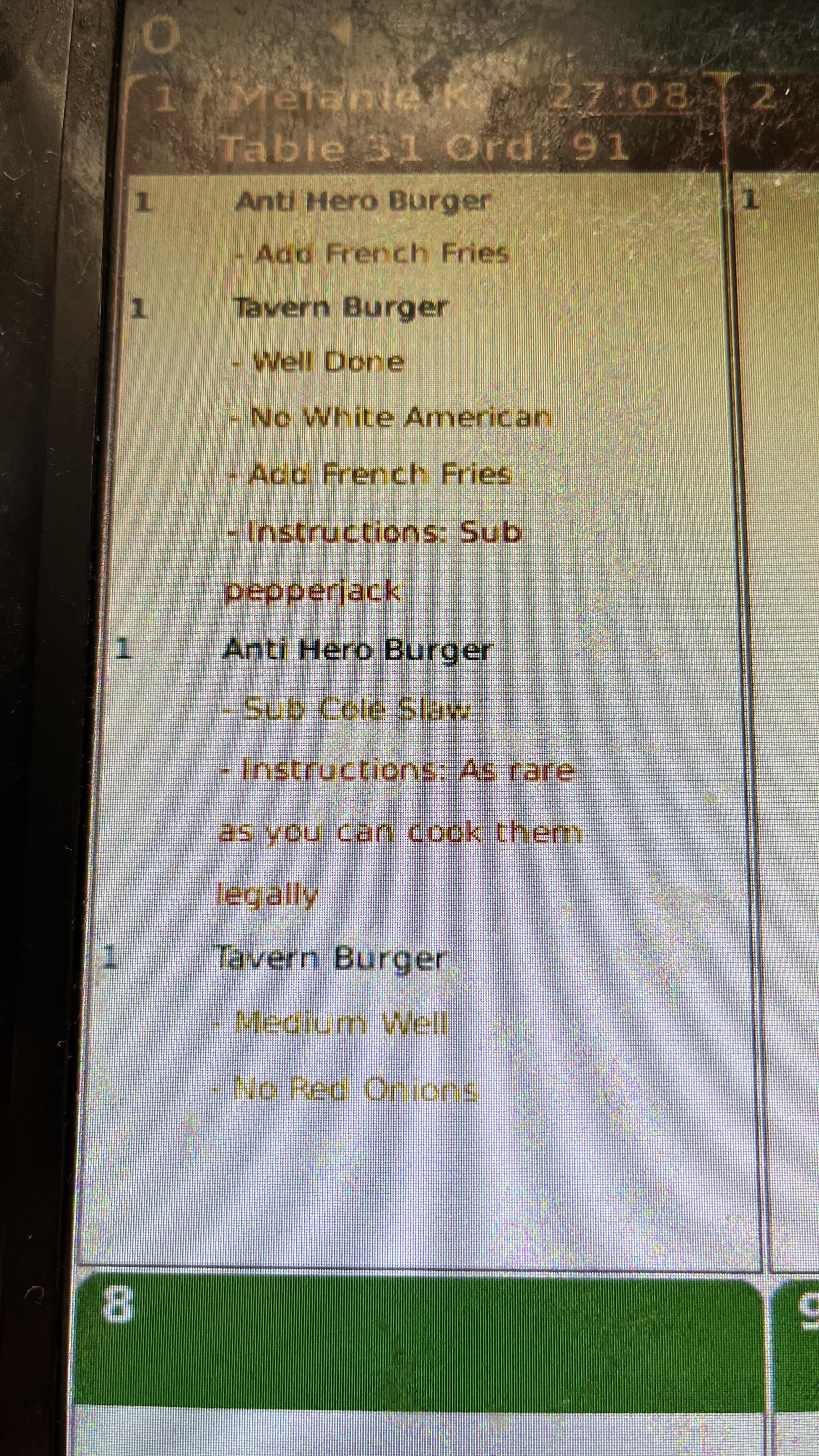 I have this dude Tom who comes in every day that has me cook either filet or Burger. Literally 20 seconds on each side and that’s almost too much. He’s an old man there’s no way his digestive system is working properly. He’s a straight-up asshole too and only lets me cook for him. He gets mad at the staff if I have a random day off out of the norm.