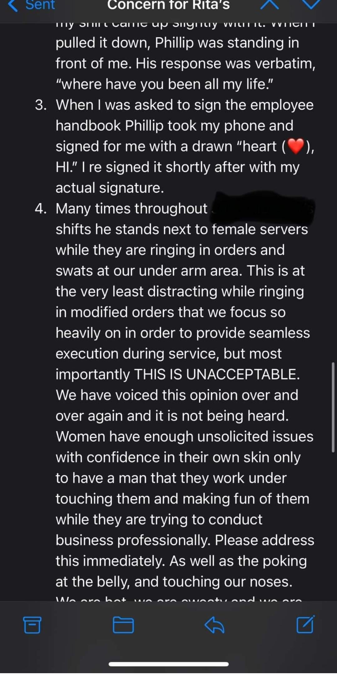 Ritas Seaside Grille, Charleston SC is allowing managers to sexually harass women and children.