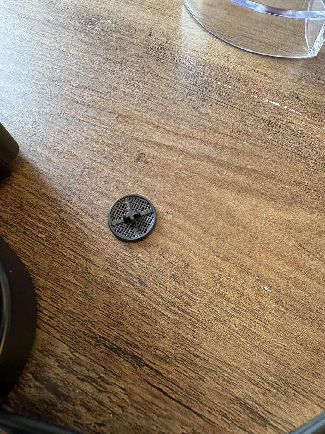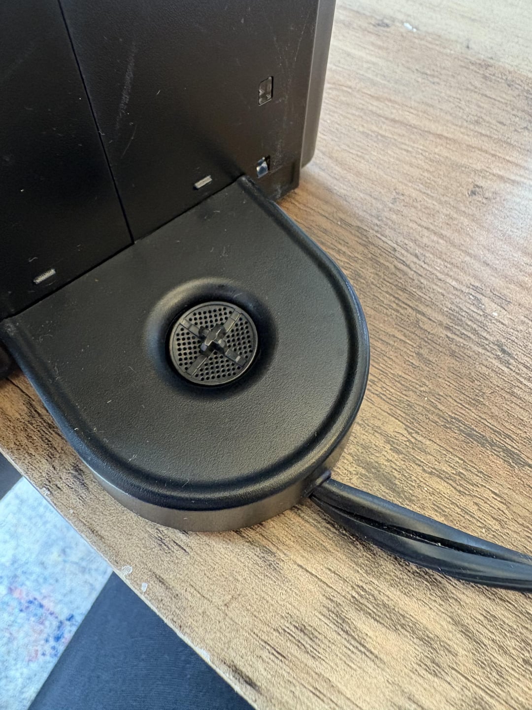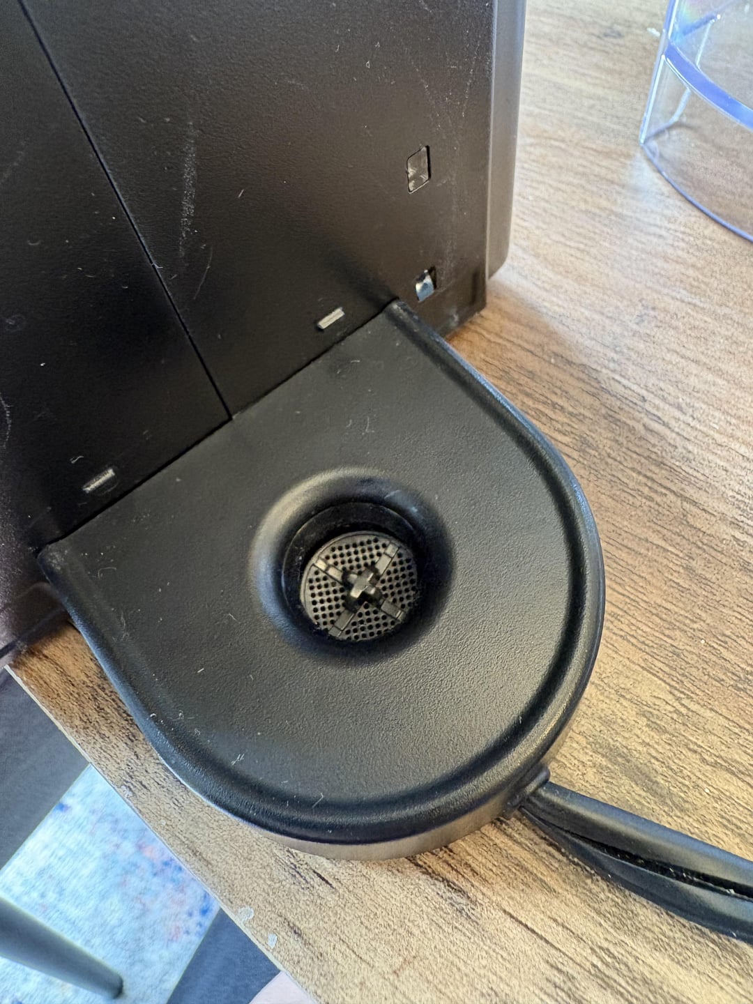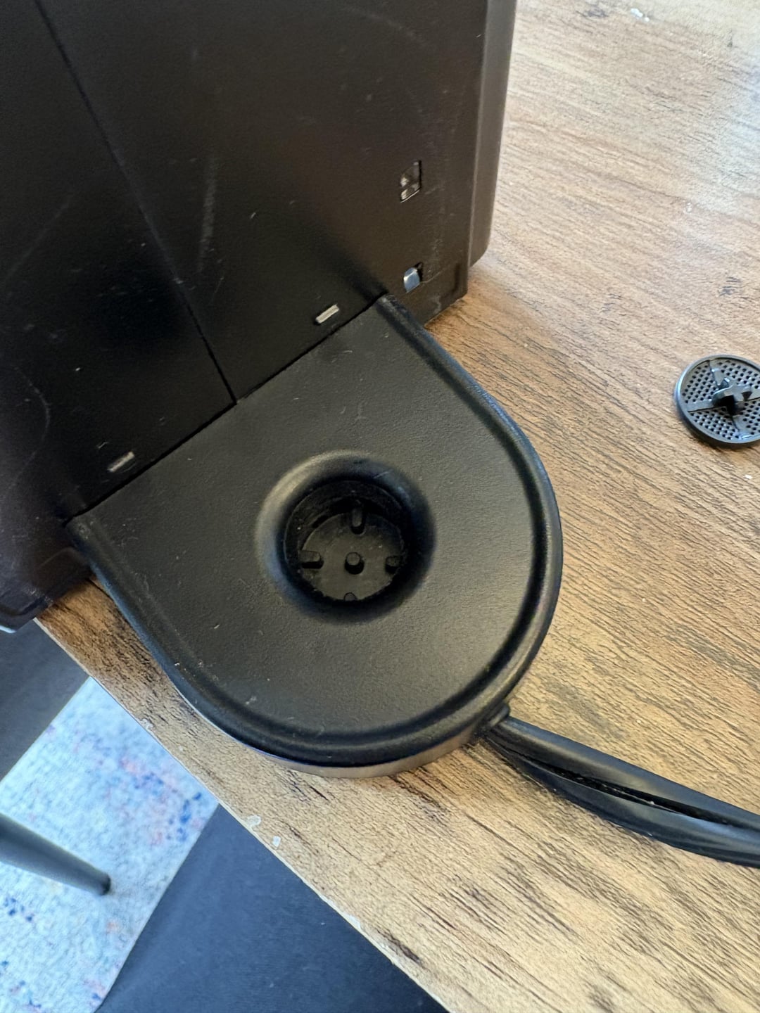4 – the base after I reinstall the water tank and then remove it to show how the round piece has been pushed in
