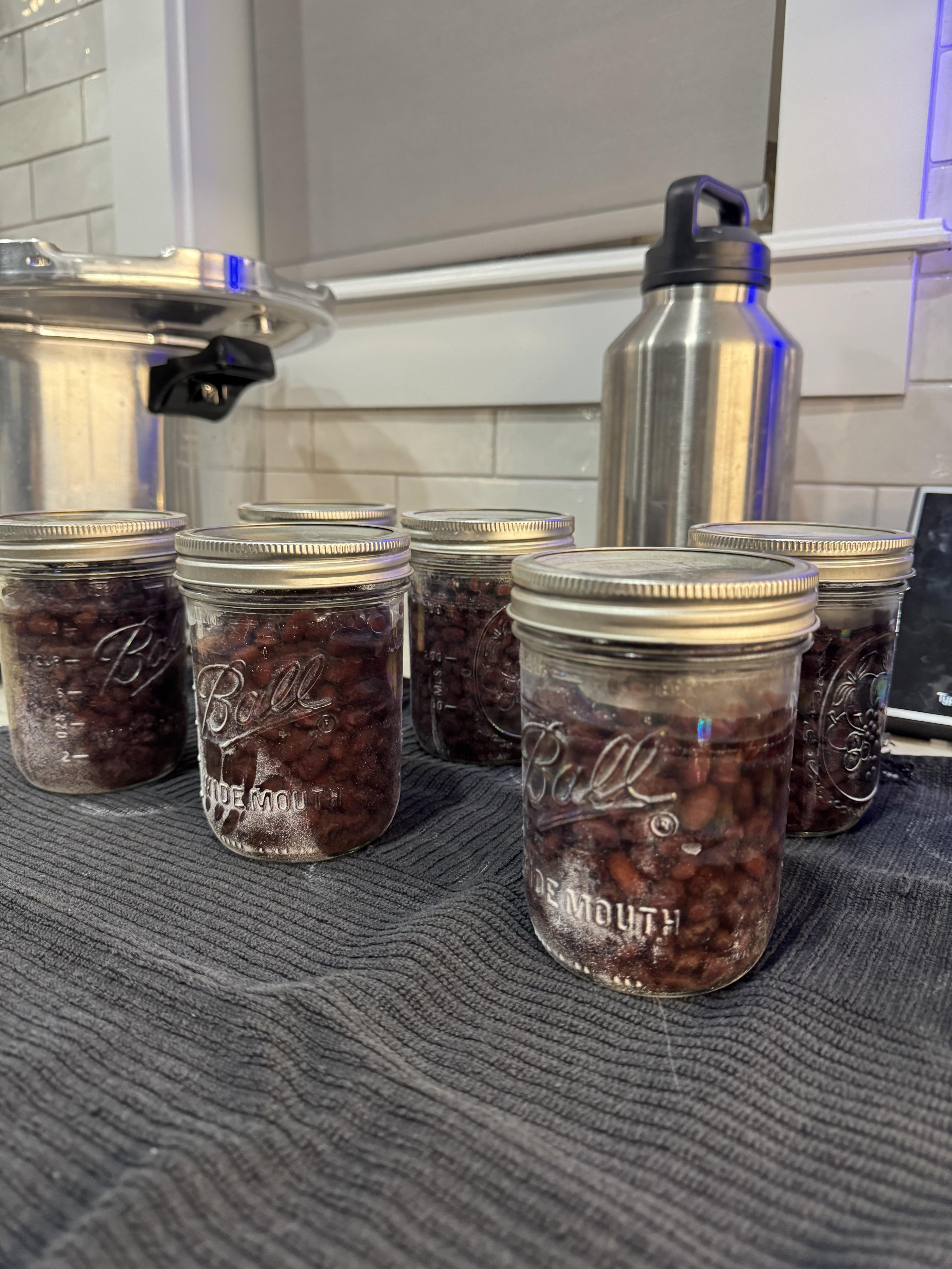 After processing at 11-12psi for 75 min (at sea level) the water line is below the beans and there is a weird residue on my cans. Is this normal? This is my first ever canning experience…