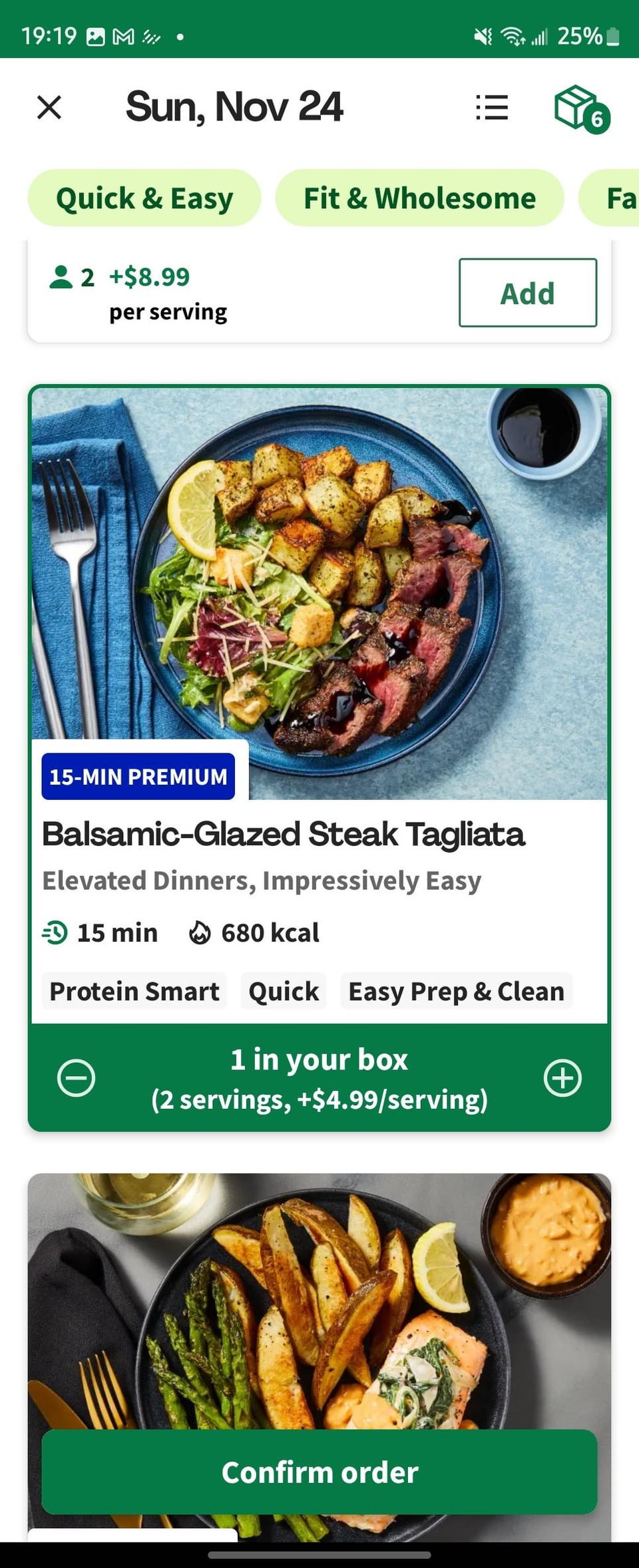 lol I was confused to until I read the other comment. It’s additional to the standard cost of the meals. It’s a premium meal, but not top of the line premium meals that are like an additional 8.99 per serving.
