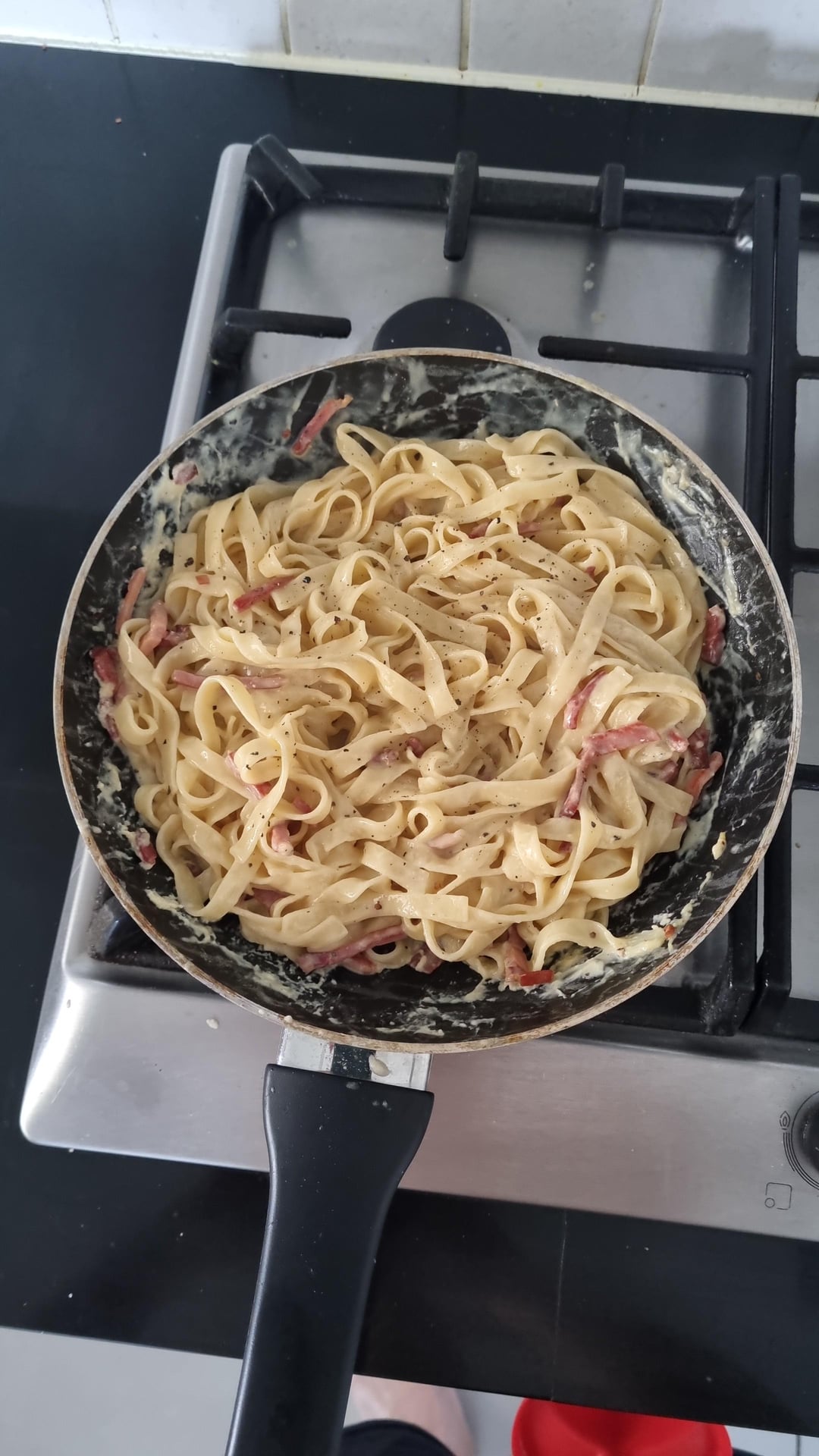 Carbonara Night by TheFoxMan11 4 Comments emanueledippolito 11 months ago No Random-Cpl 11 months ago More like scrambled eggs and pasta night.OP, what I have found works to get a creamy sauce is to mix the pasta and the egg/cheese mixture off the heat, right after you drain the pasta. The heat from the pasta cooks the eggs but it keeps them creamy and doesn’t scramble them. jktsk 11 months ago Looks good- how does it taste? Hieronymus-Hoke 11 months ago My grandmothers wheels!Write A CommentYou must be logged in to post a comment.