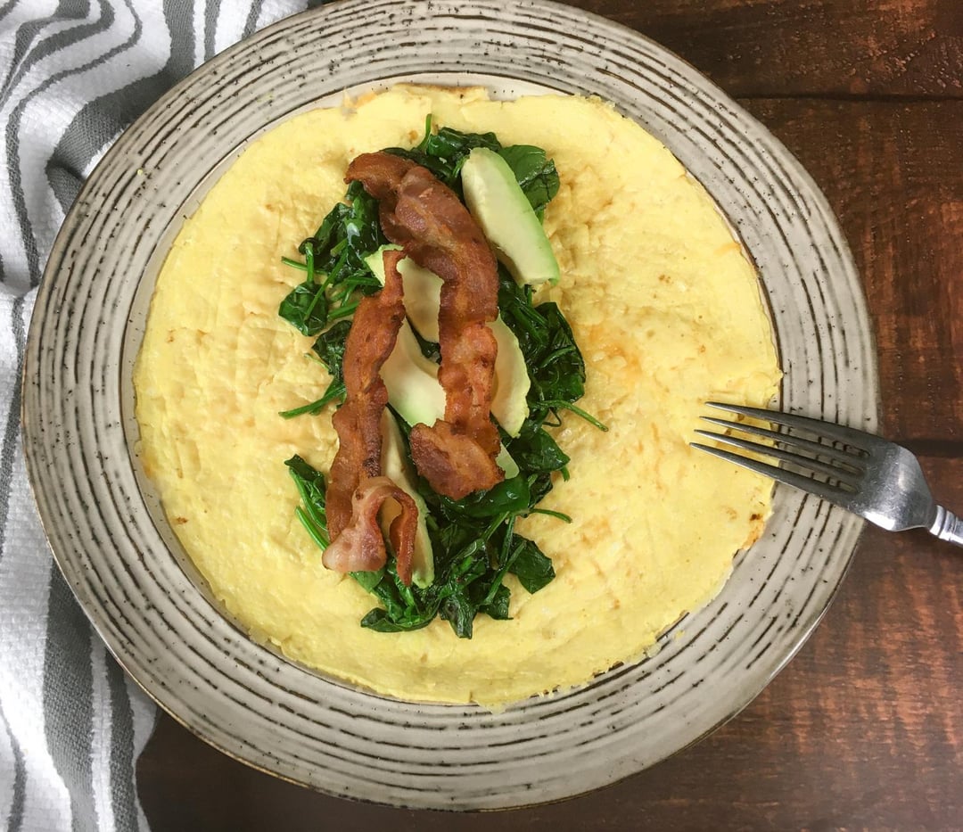 Keto Egg Wraps with Spinach, Avocado, & Bacon