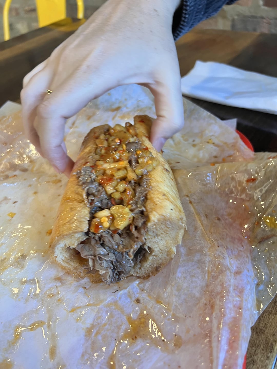 Farewell meal was Al’s beef. Wet, with provolone and hot giardinera. Killer.