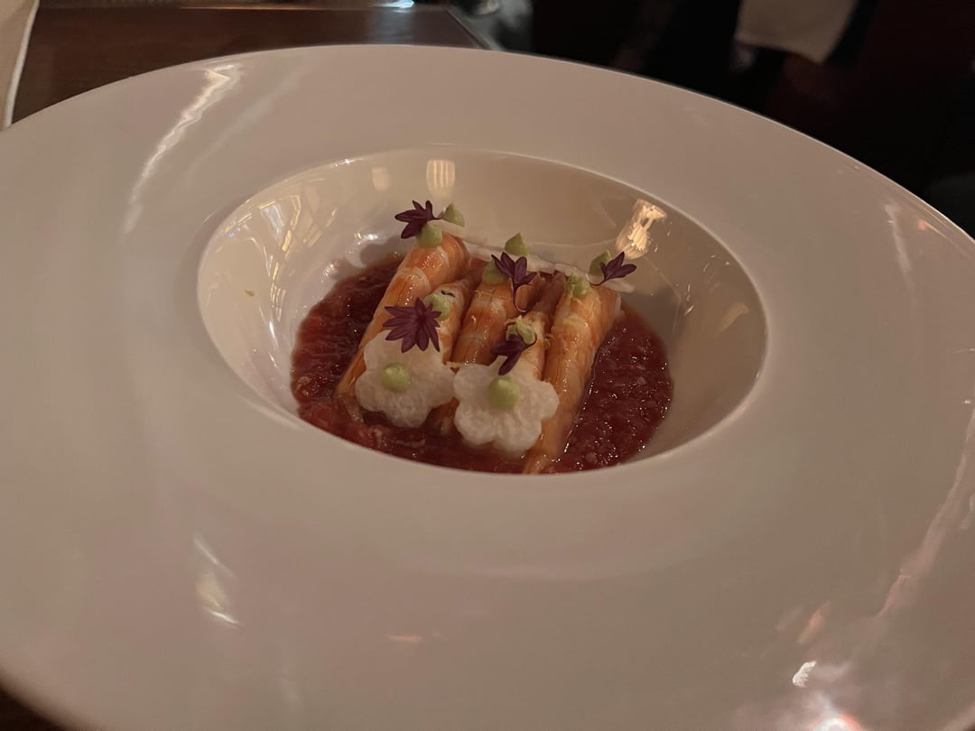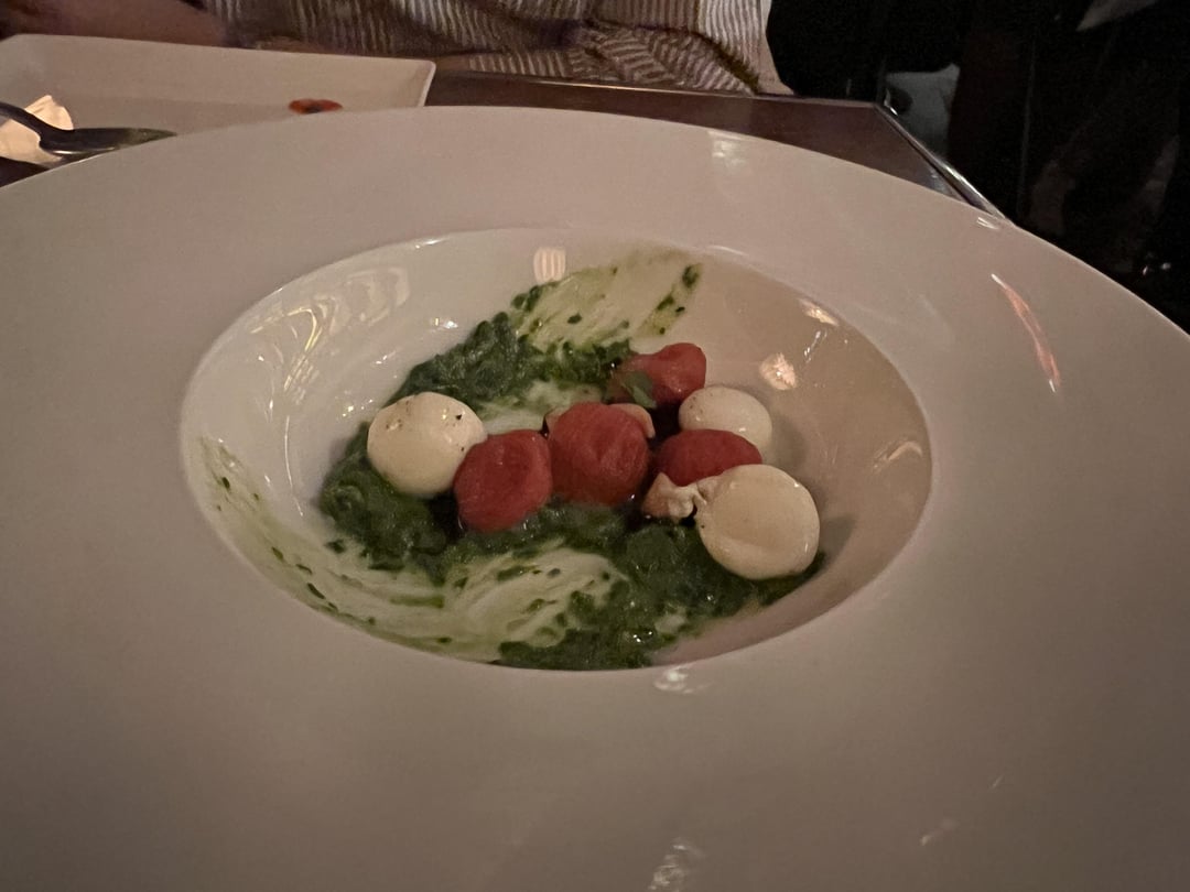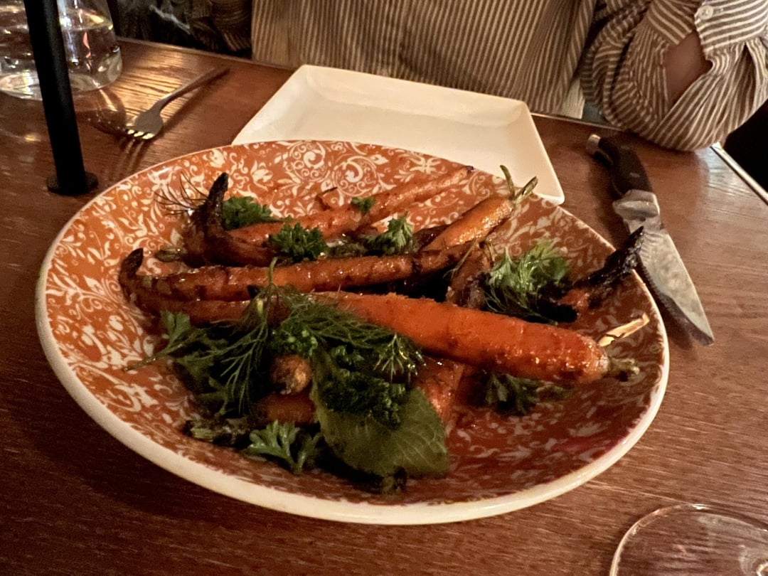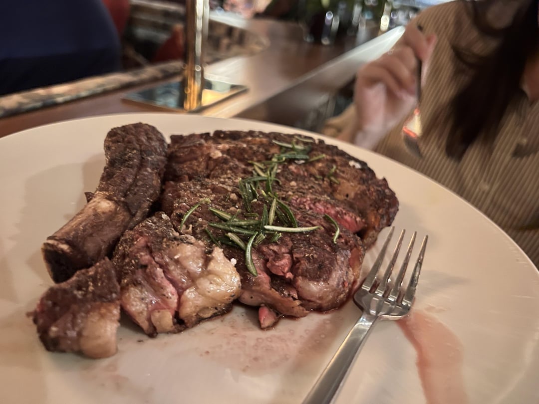 Dinner was at Bazaar Meats. Philly cheesesteak bite was great. Filled with a cheese sauce and wagyu ribeye on top. Shrimp cocktail with piquadillo pepper cocktail sauce. Caprese salad riff, with ‘liquid’ mozzarella balls. Kinda popped in your mouth when you bit. Carrot side dish with a carrot gastric and carrot tops. Wildly good. Then a ‘Chicago cut’ steak cooked over coals. Very good flavor and cooked to perfection. Very similar to a porterhouse.
