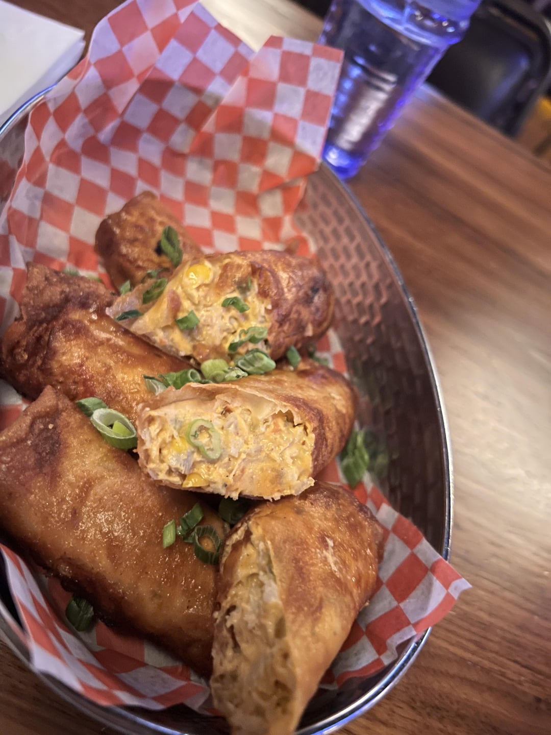 Friday night, cab dropped us off at the wrong place. Was looking for Professor Pizza and he put us in front of Recess. We were very hungry so we didn’t fight it. Buffalo chicken wraps. Kinda like an egg roll type thing. Greasy good.