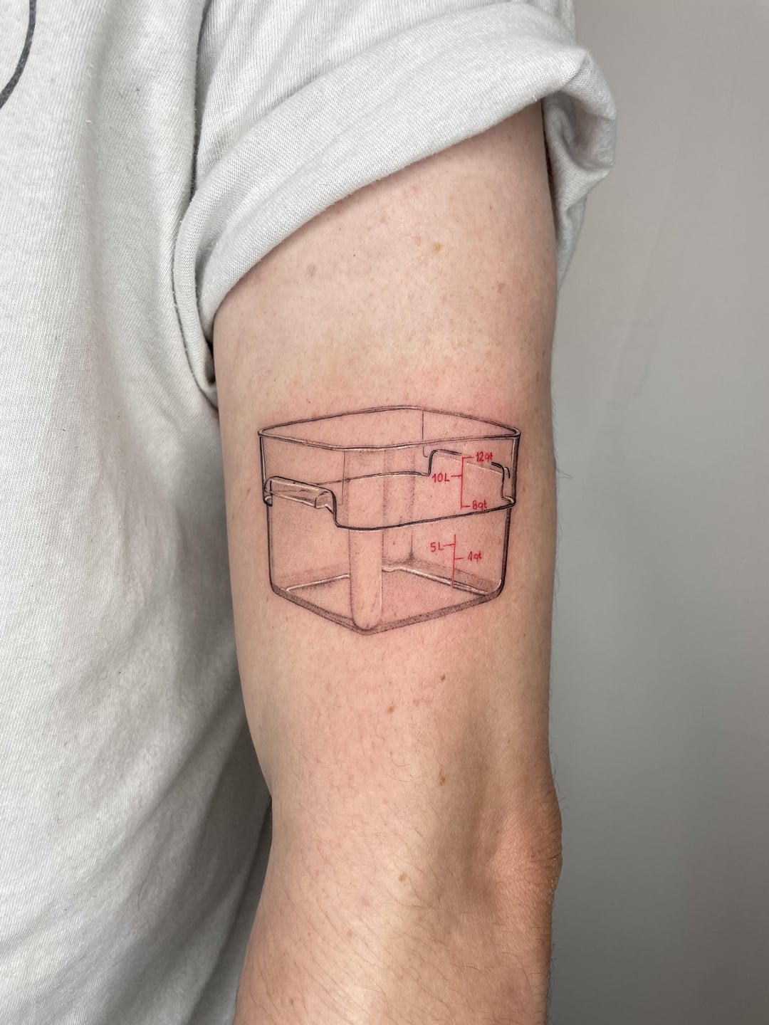 I dig when people get the real kitchen equipment tattooed. Fuck knives, spatulas, and whisks. Give me Cambros and 9th pans all day.