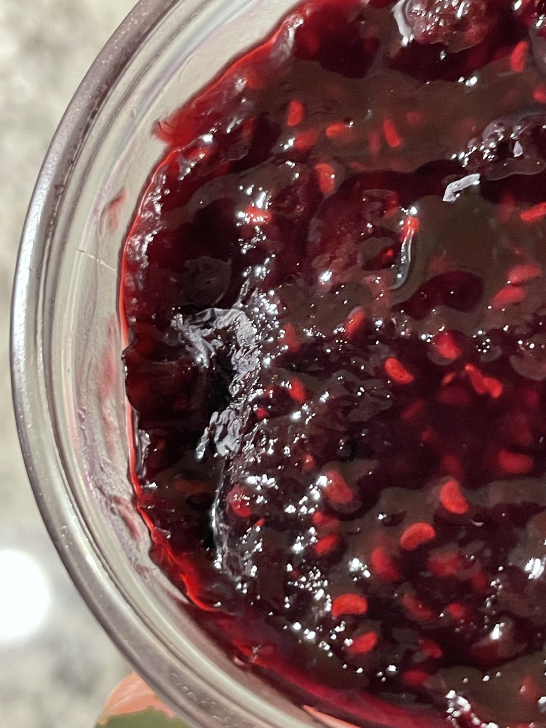 It looks like a dried blueberry skin but I just want to confirm it’d be safe to still eat? I just started canning this year for the first time and followed this mixed berry jam recipe from Ball. It was still sealed but seemed weird that it dried out?