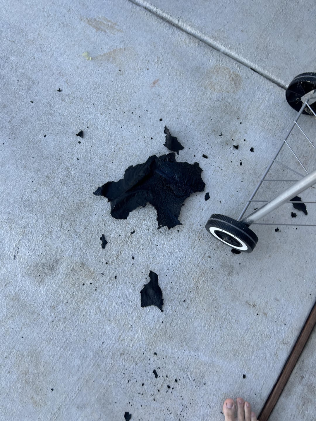 Normal. Greasy smoke burned down to flaky carbon. Looks like paint peeling but the kettle is baked on powder coating, warranted for several years.
