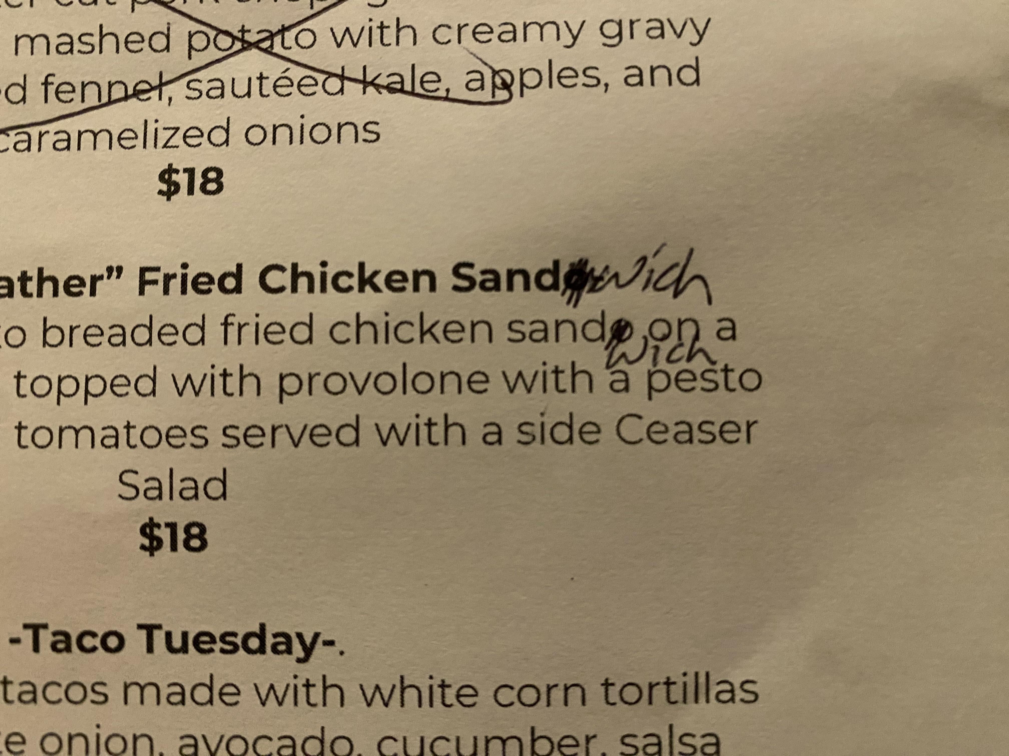 Sandwich on the menu Sando on the tickets. Three less characters to print and I like yelling Sando across the line to my grill guys and I feel no shame