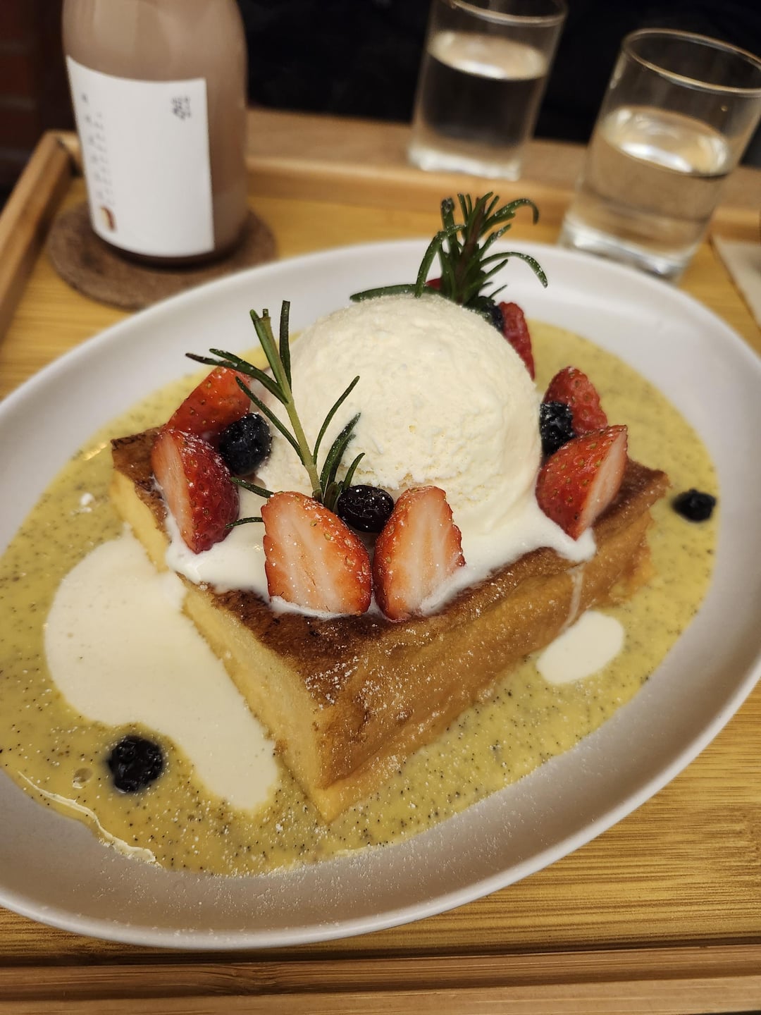 Hi everyone! I normally don't eat french toast or anything like this, but I saved up room all day for it. It was very creamy in the center, but I'm not sure what all was in it. I put it at about 1100 total, does that seem right? (Included the silverware photo for slightly better size reference)