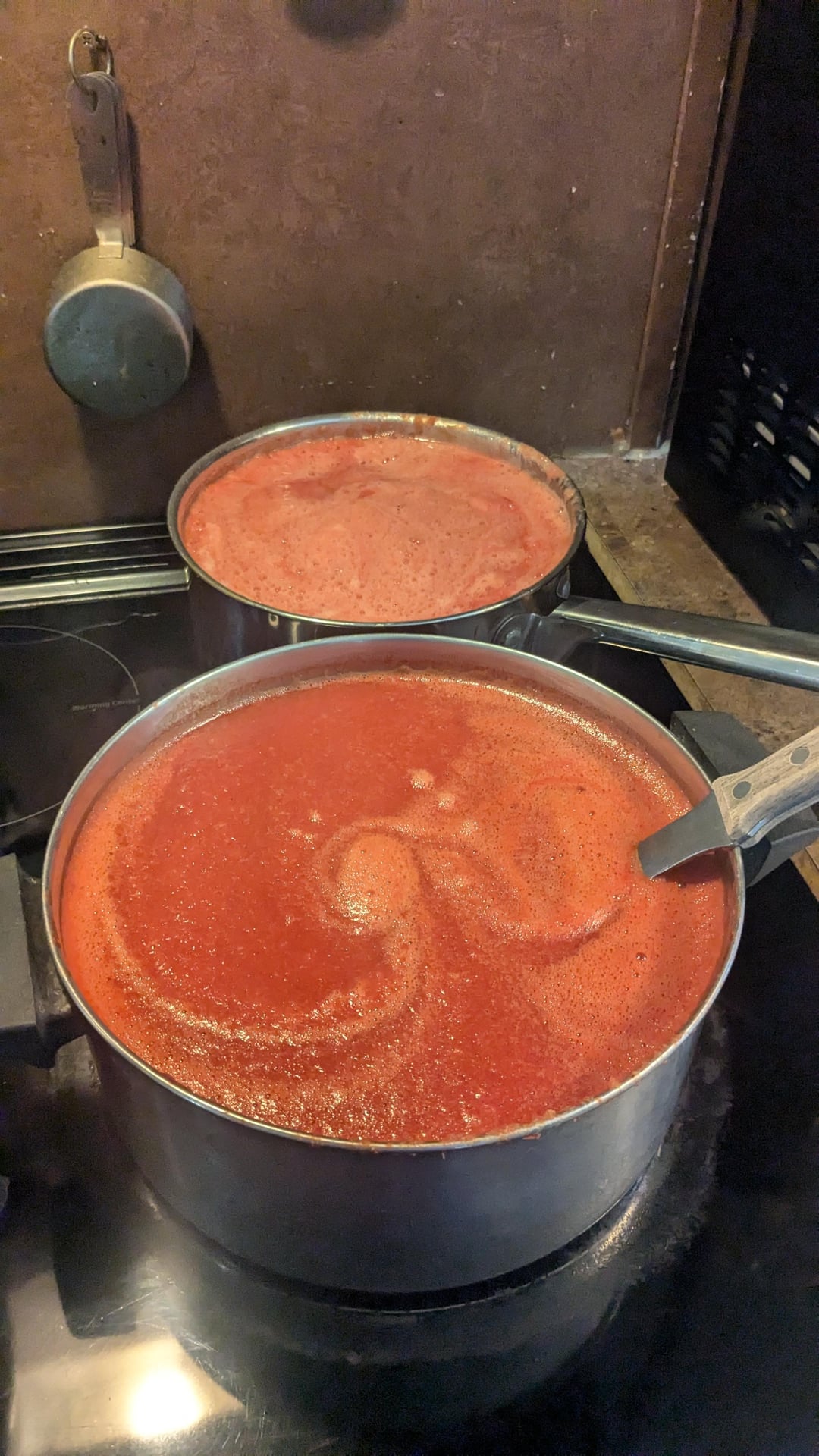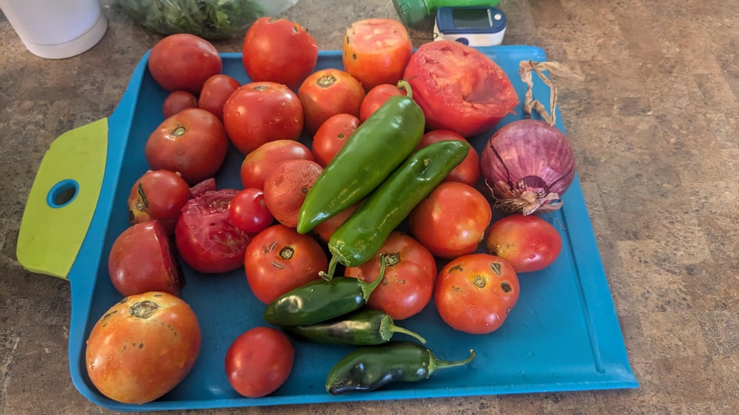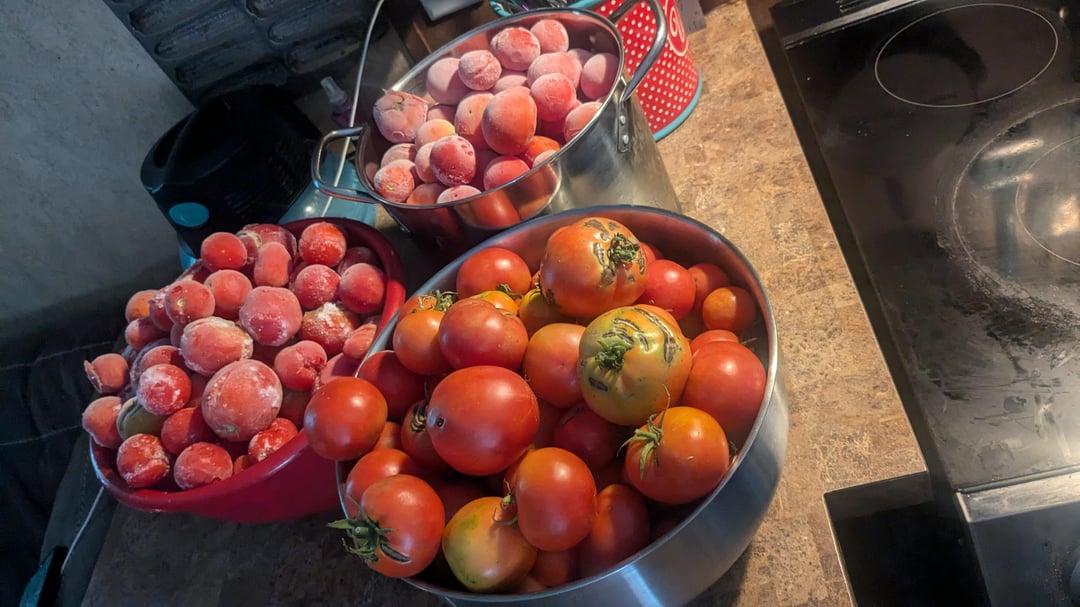 My plants have been loaded all summer and I'm still getting TONS, today was a slow day so I took out what I had in the freezer and what I picked last week and ended up with 13 jars of tomato sauce (I have to get the seeds out bc the family doesn't like them) and a batch of salsa (it doesn't last long enough for me to can around here 😂)