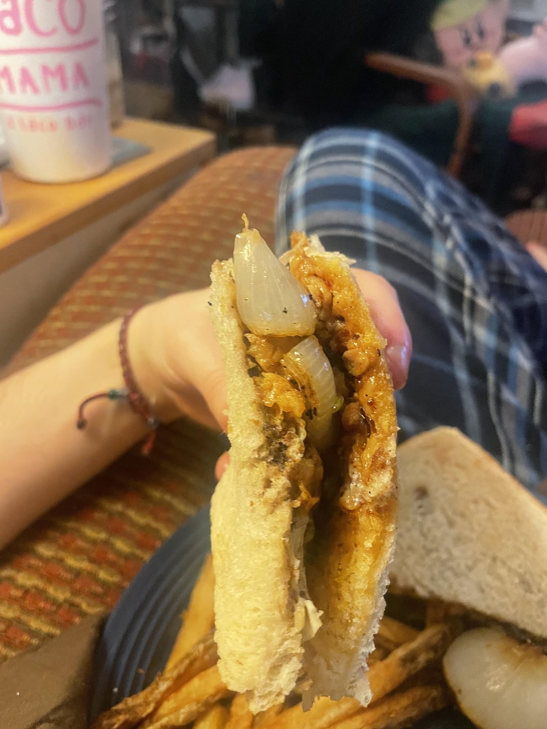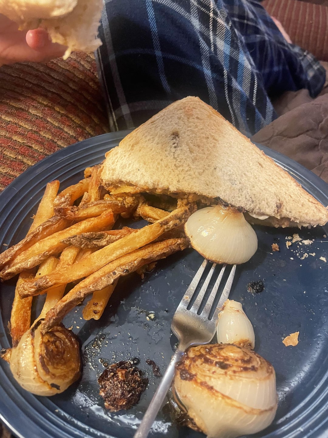 Roasted onion, chicken sausage roasted in chili crisp oil, olive oil roasted fuyu persimmon and brie on sourdough with balsamic glaze.by Dudeiii42 Write A CommentYou must be logged in to post a comment.