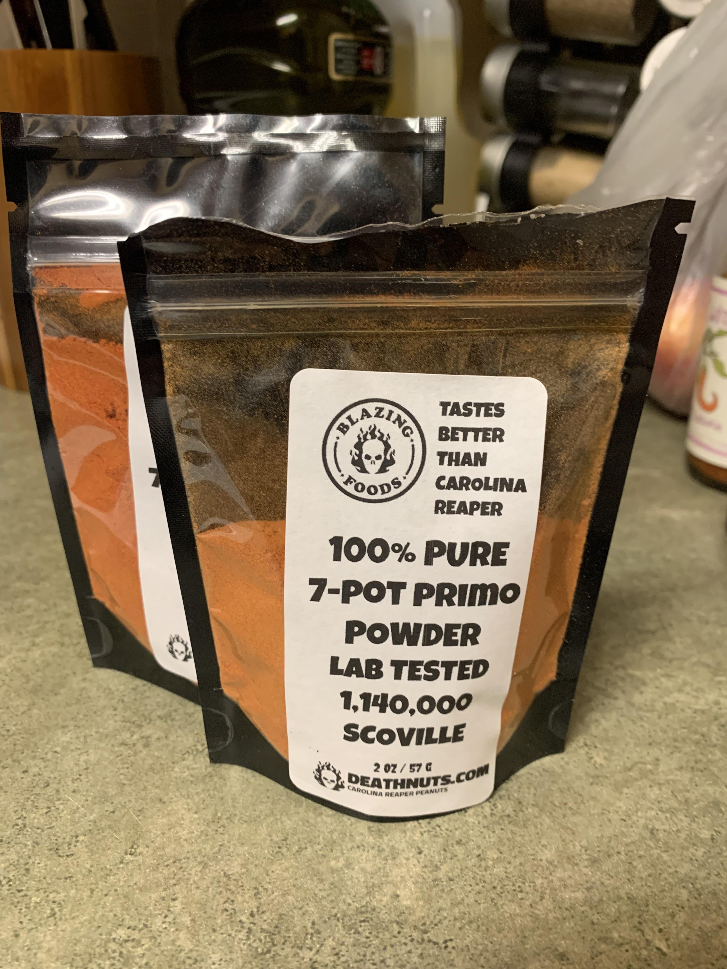 I grew 7 pot and reapers this year and powered some both of them. 7 pot taste way better to me. Stuff is really good. Have a shaker full taped shut on a high shelf in my kitchen where the rest of the family can’t reach it. Made the mistake of shacking some on a dish I was making with the fan on.