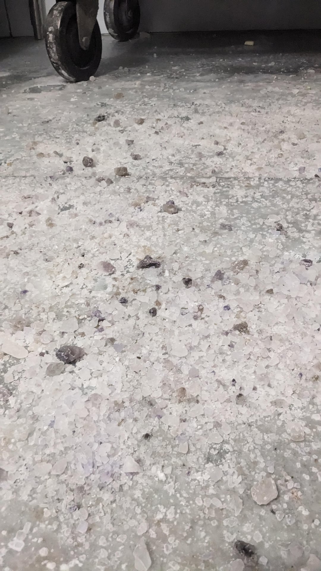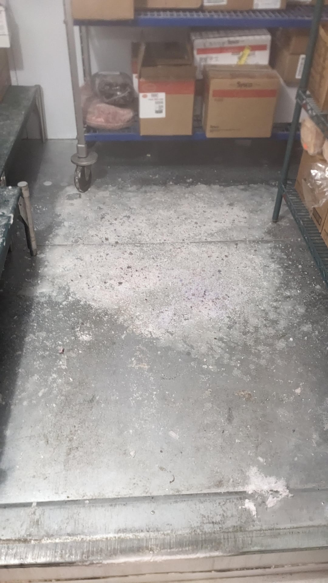 Maintenance put rock salt on the freezer floor to try and melt the ice. It’s welded on now.