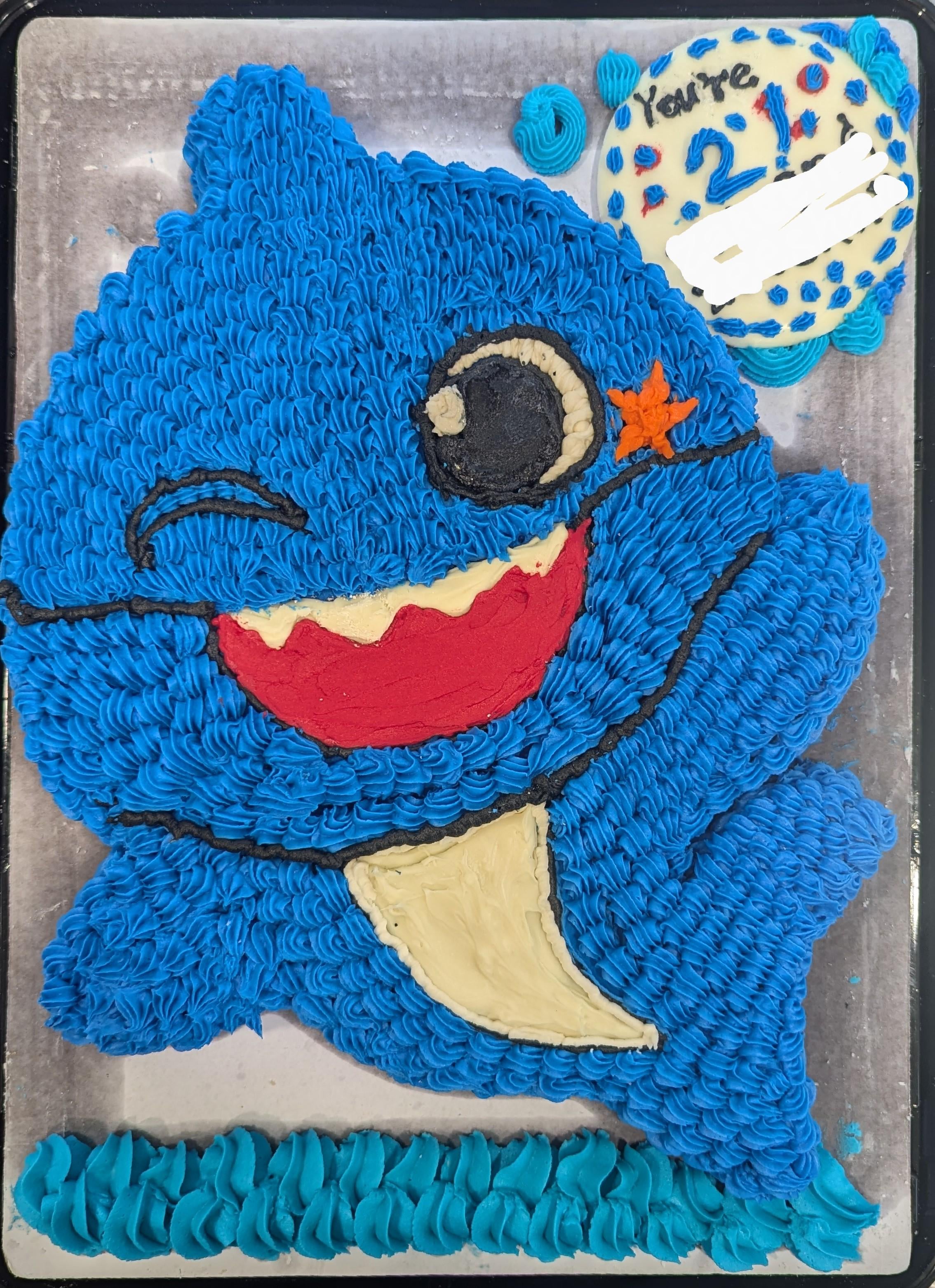 Did this cake for a friend's kids birthday. If I were to do the same cake again I would definitely make some different choices about using white chocolate on the cake and how I went about the eyes. Would love to hear your thoughts and constructive criticism. I struggled a little with the proximity of the left "arm" and tail.