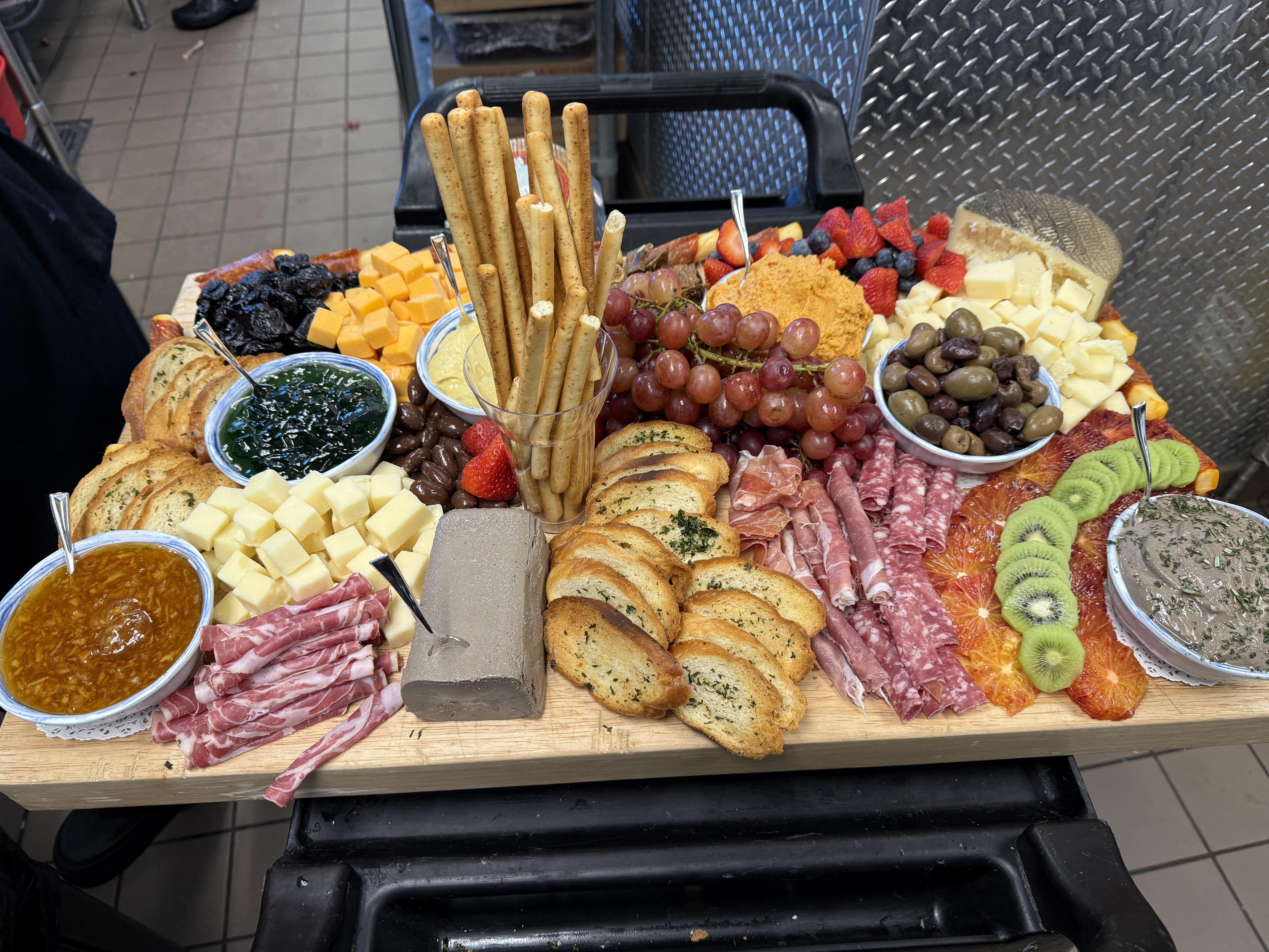 In the bowls are apricot preserves, apple mint jelly, spicy Dijon mustard, red pepper hummus, mixed olives, and herb pate. I should’ve posted the after picture. They destroyed the board this year. I like making the elders happy.