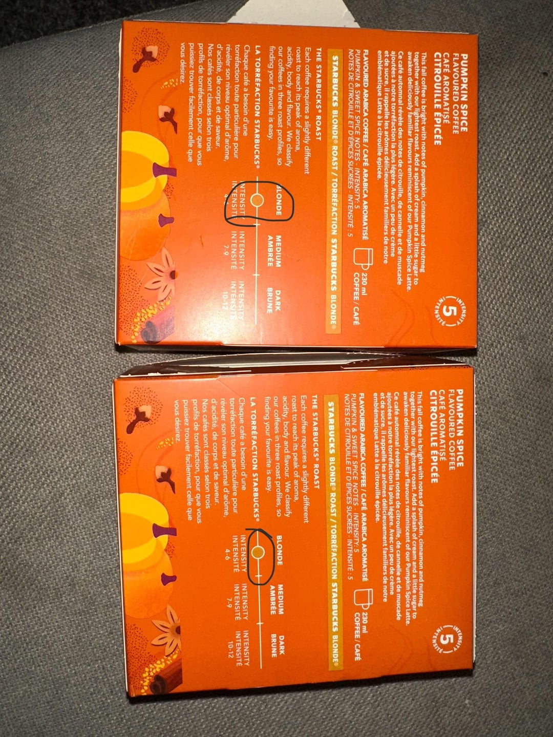 A guy on Facebook marketplace had a really good deal on Starbucks Nespresso Pods. He had them for around $4.4 a box (8 capsules) tax included. Tried comparing them to the originals but they look exactly the same minus a minor color difference in a circle (I’ll attach a pic below). Guy was sketchy tho so yeah. Selling them out of his car lol.
