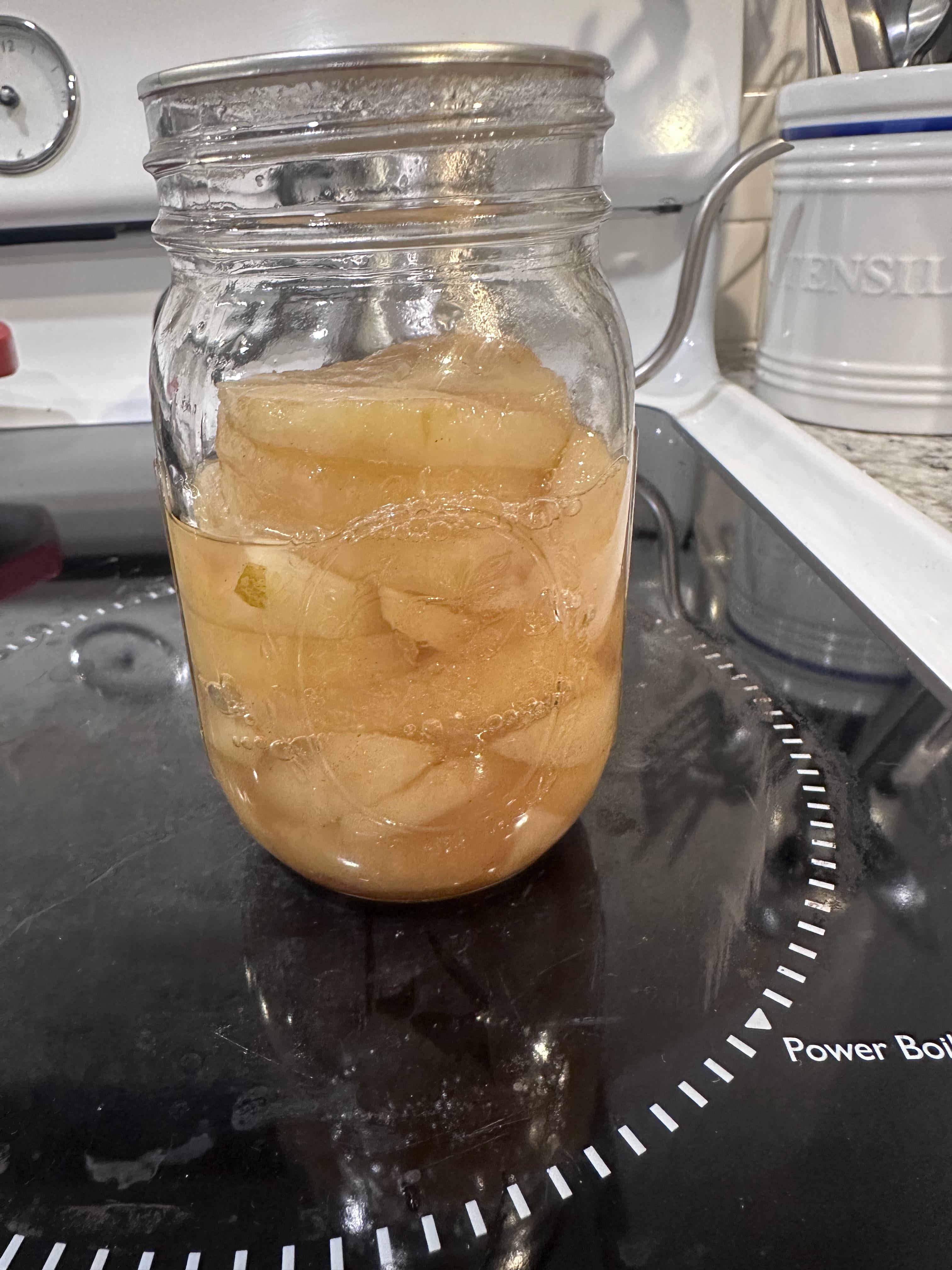 (I used the Ball Canning Back to Basics recipe that does not have clearjel in it)
