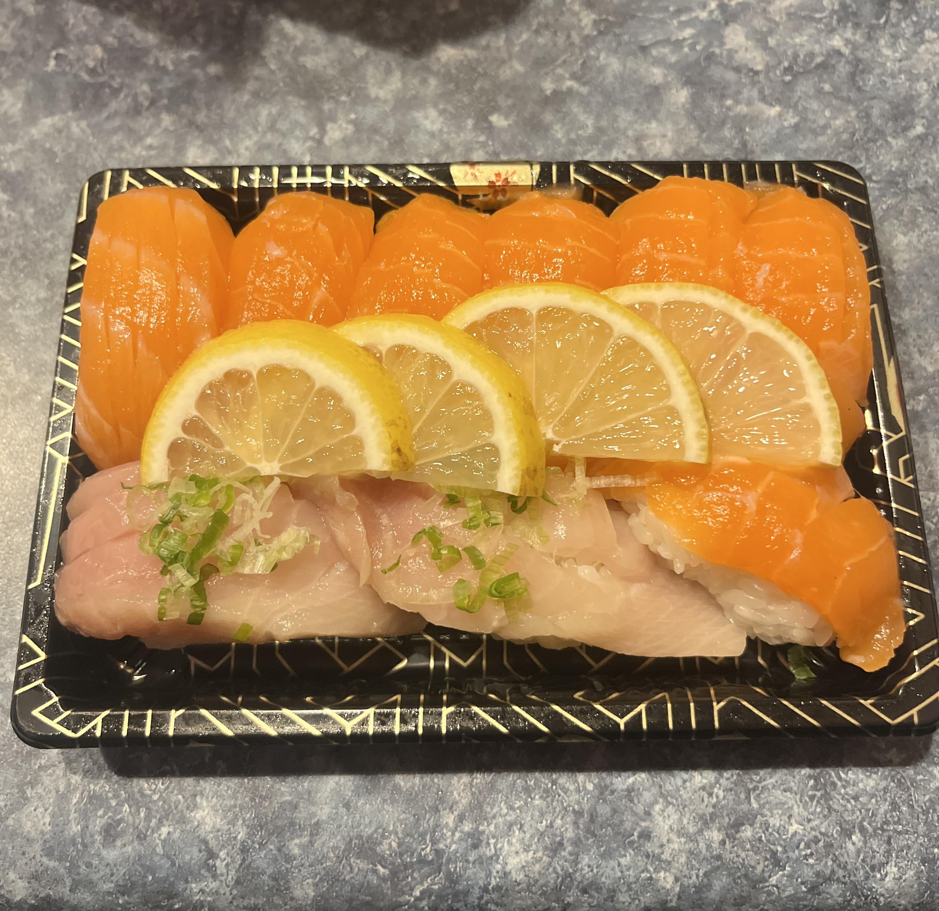 I hate when I open up the delivery box and see this. Imo it ruins the sushi/sashimi since the lemon ‘cooks’ the fish so some of it is a different taste and texture.