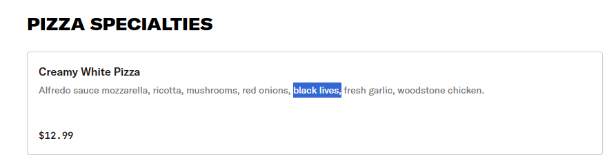 I feel like murder for the sake of pizza counts as a crimeby AdmiralPhuckit 4 Comments Useful_Transition883 11 months ago Oh course its a white pizza TheEscapedGoat 11 months ago 😂 this is like seeing “Human (Hunan) Beef” on menus GiLND 11 months ago I wouldn’t order a **Creamy White Pizza** made by **Alfredo**, seems like a red flag already. huhnick 11 months ago Something something BLM?Write A CommentYou must be logged in to post a comment.