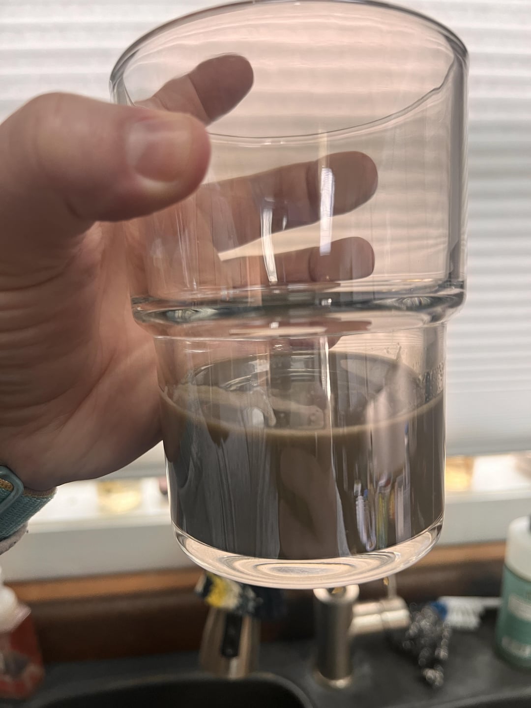I noticed before my coffee it was starting to spurt water for a bit. I went ahead and descaled it. I did it twice because I figured what would it hurt. I went to make coffee, and as it was going I went ahead and added a little milk. I realized that it looks coal black. Is my machine toast?