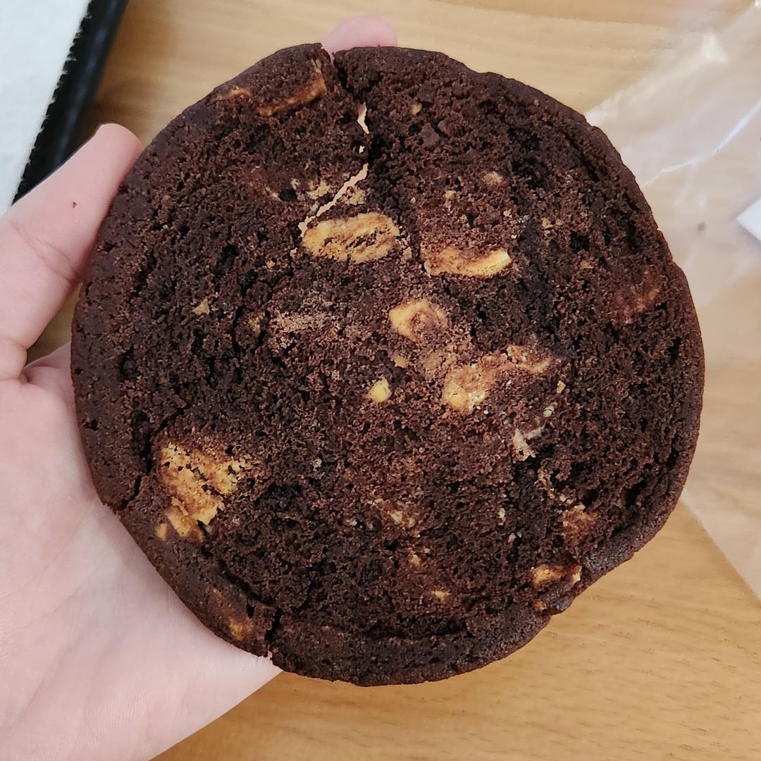 This cookie is from Inside the Box Catering, though I can't find any nutritional information online for it, or for any of their products. Yes it's a big cookie, but it's not thick, doesn't taste very sugary, nor is the chocolate flavor rich. I'm thinking 450 calories, maybe a bit more?