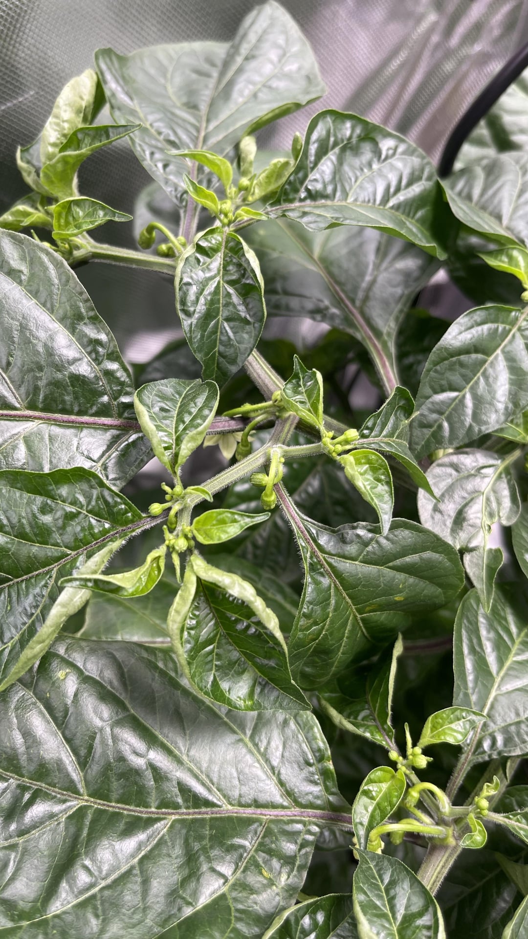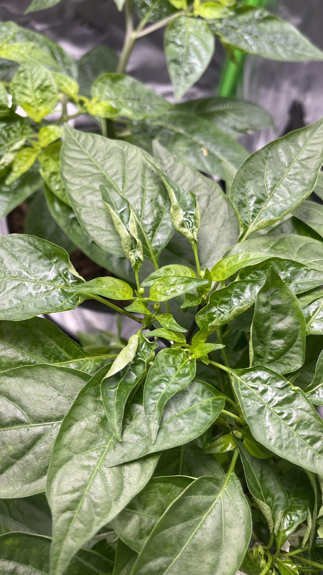 First time indoor growing, and I think I’ve narrowed down the issue to calcium deficiency, but could be wrong. What do you all think? Also, tips for addressing it would be much appreciated. Two different plants are shown here (habanero and santaka).