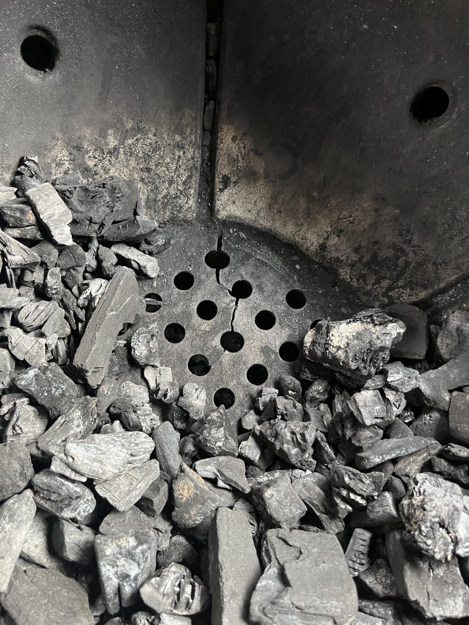 Should be fine since it’s just in the cast iron vent. You’re probably good to still cook but I’d replace it with a charcoal basket. Easier to clean and you will get better airflow.