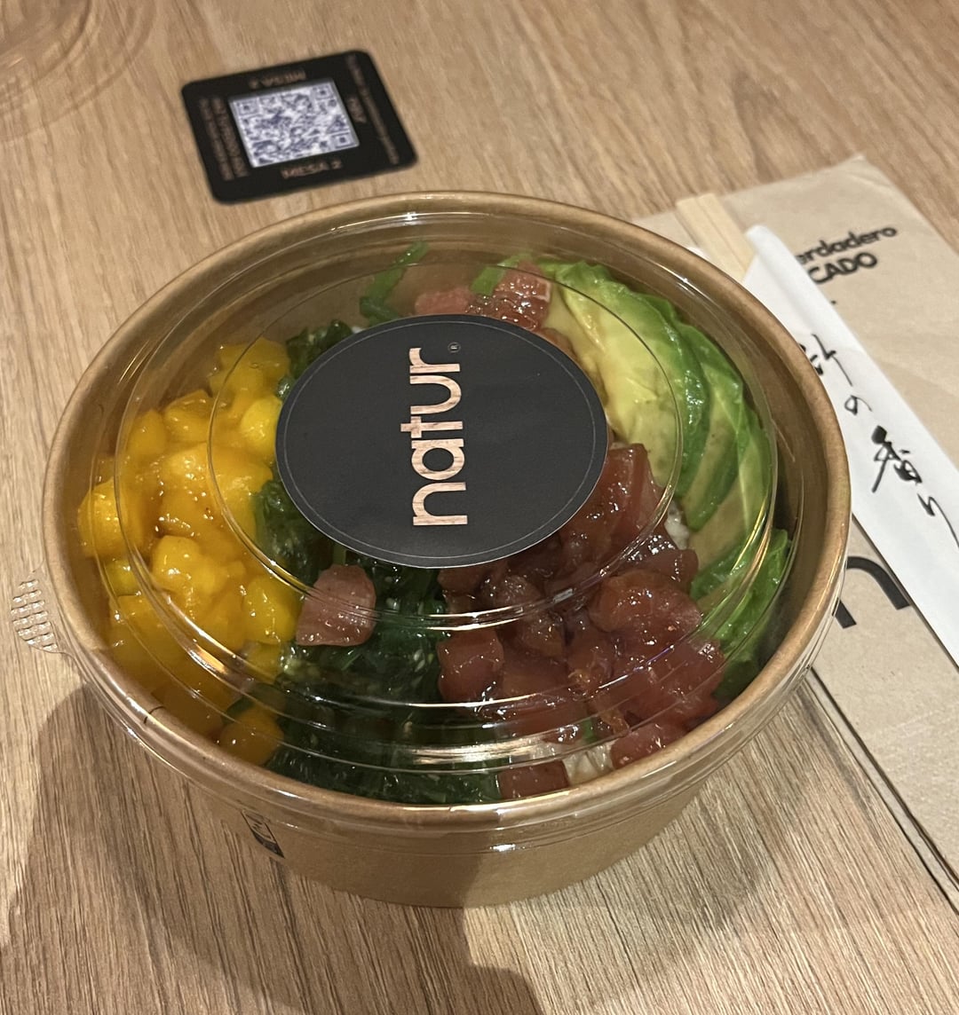 Sushi rice, tuna, mango, avocado, wakame and poke sauce