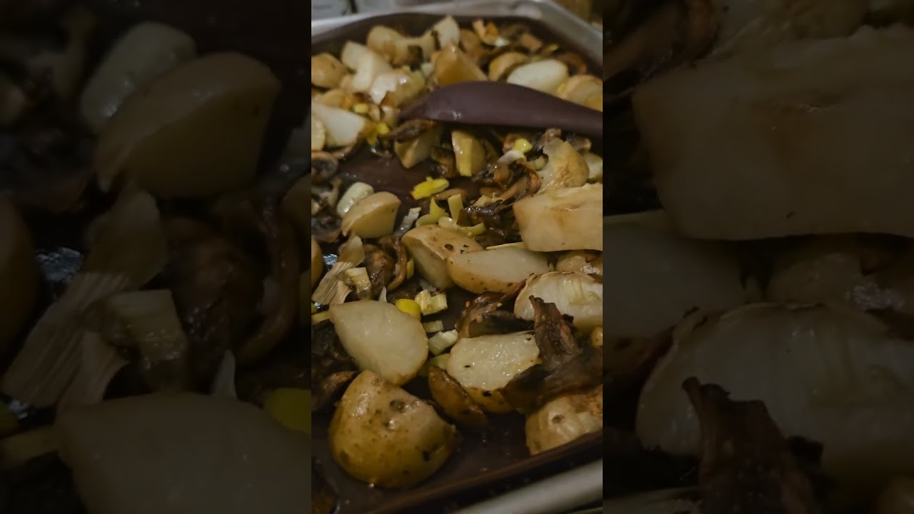 place diced potatoes, sliced mushrooms and leeks on Epicure’s sheetpan with liner and season with salt. Add a generous ssplash of olive oil and mix well to make sure all is coated with olive oil. Bake at 180 Celsius until potatoes are tender about 15 mminutes depending on the size of the potatoes.